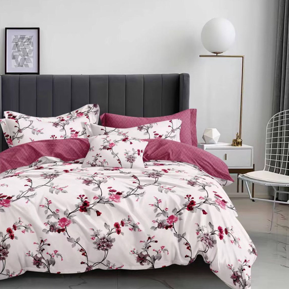 Lenjerie pat dublu (140x200cm, 160x200cm, 180x200cm), FINET, 6 piese, Bordo, roz, flori, East Romania, cod produs: EST-FN-230