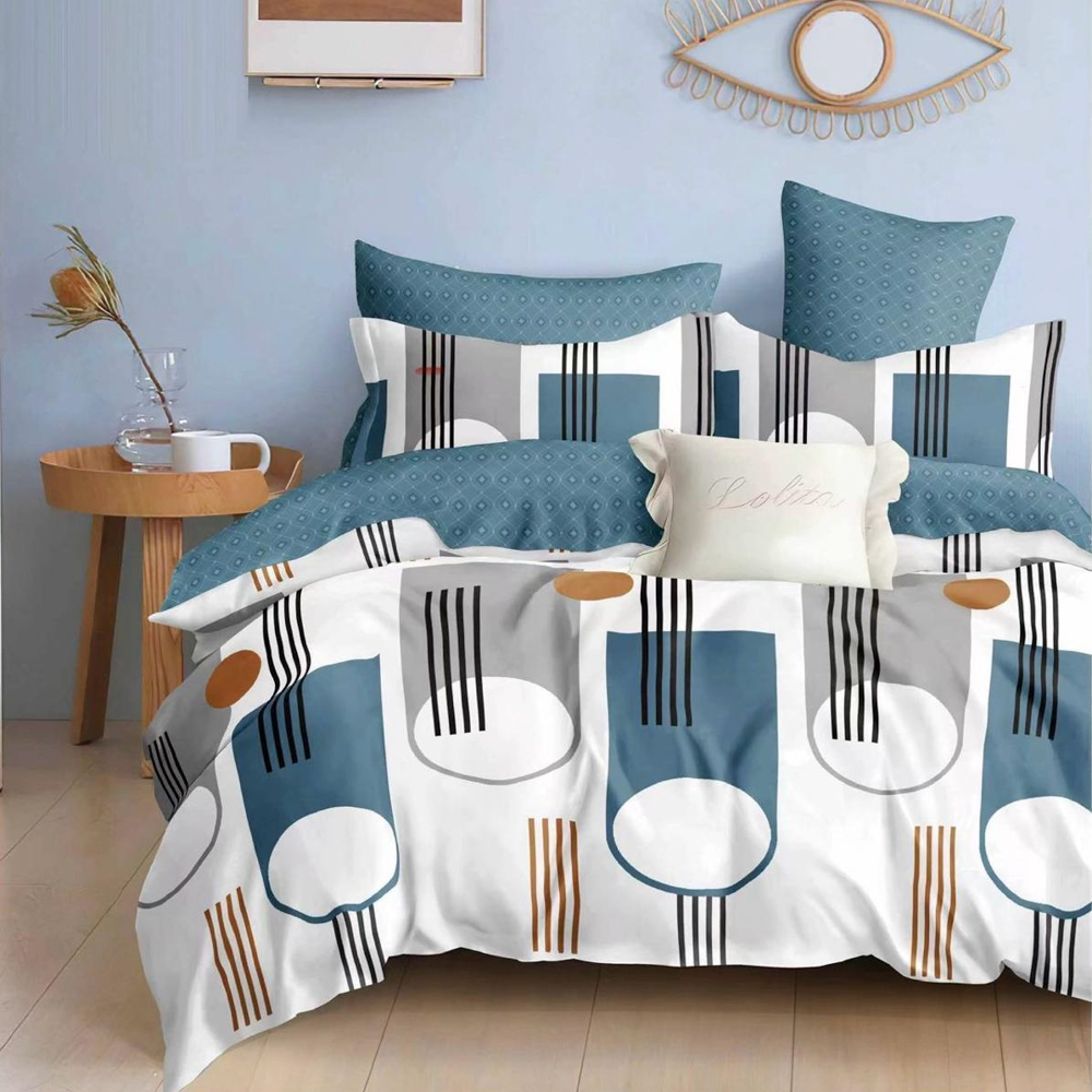 Lenjerie pat dublu (140x200cm, 160x200cm, 180x200cm), FINET, 6 piese, Crem, Albastru, forme geometrice, East Romania, cod produs: EST-FN-333