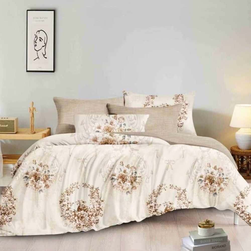 Lenjerie pat dublu (140x200cm, 160x200cm, 180x200cm), FINET, 6 piese, Crem, flori elegant, East Romania, cod produs: EST-FN-357