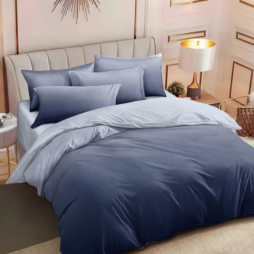 Lenjerie pat dublu (160x200cm, 180x200cm), FINET, 6 piese, cu ELASTIC, Bleumarin, degrade, Johny Home Pucioasa, cod produs: SPR-T-281