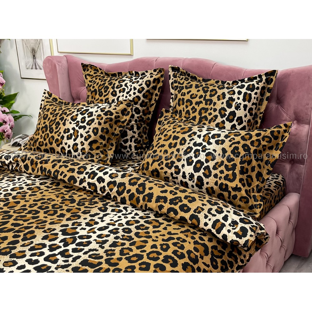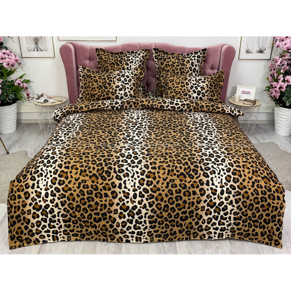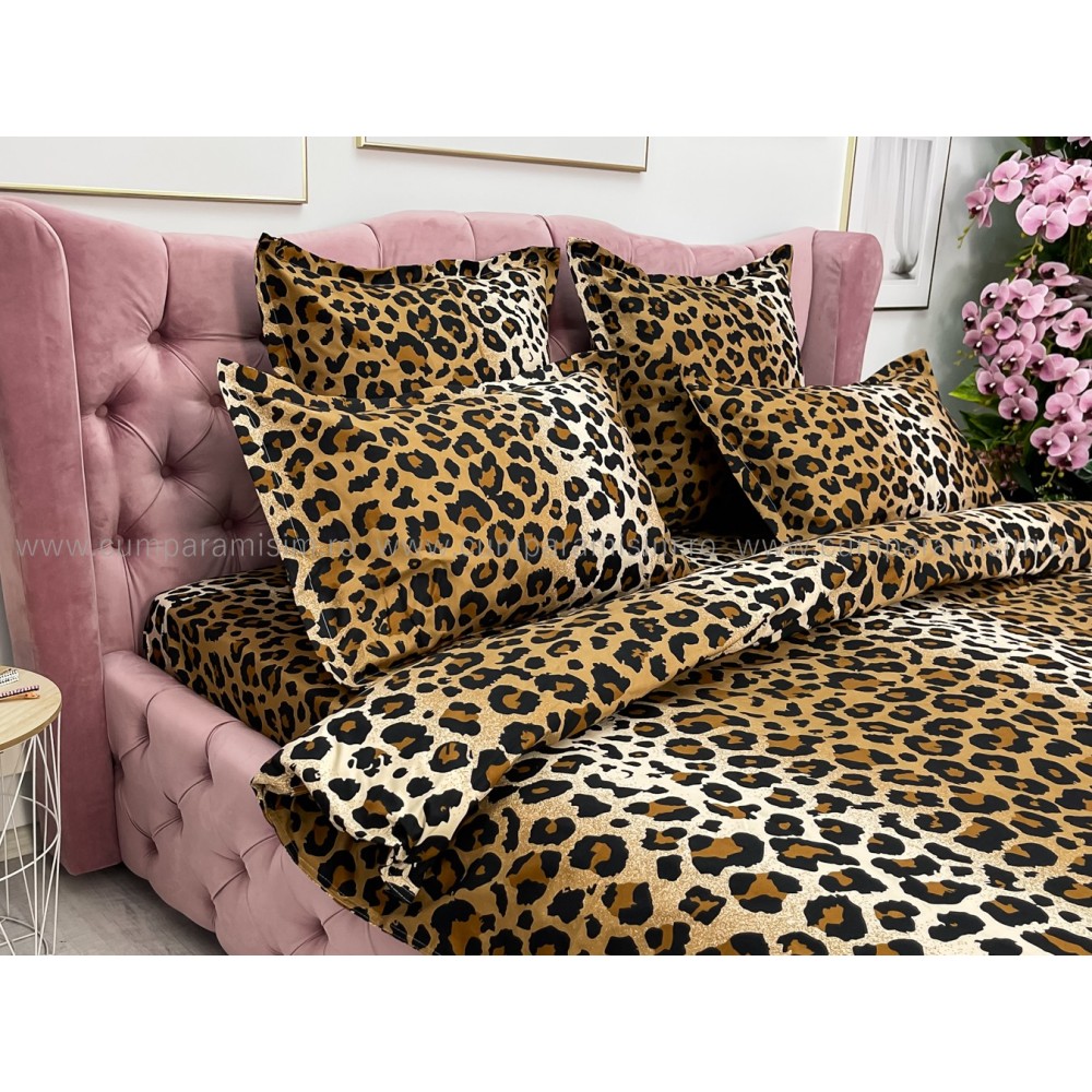 Lenjerie pat dublu, FINET, 6 piese, cu ELASTIC, Jojo Home, Maro-Multicolor, animal print, cod produs: JOJ-FE-05