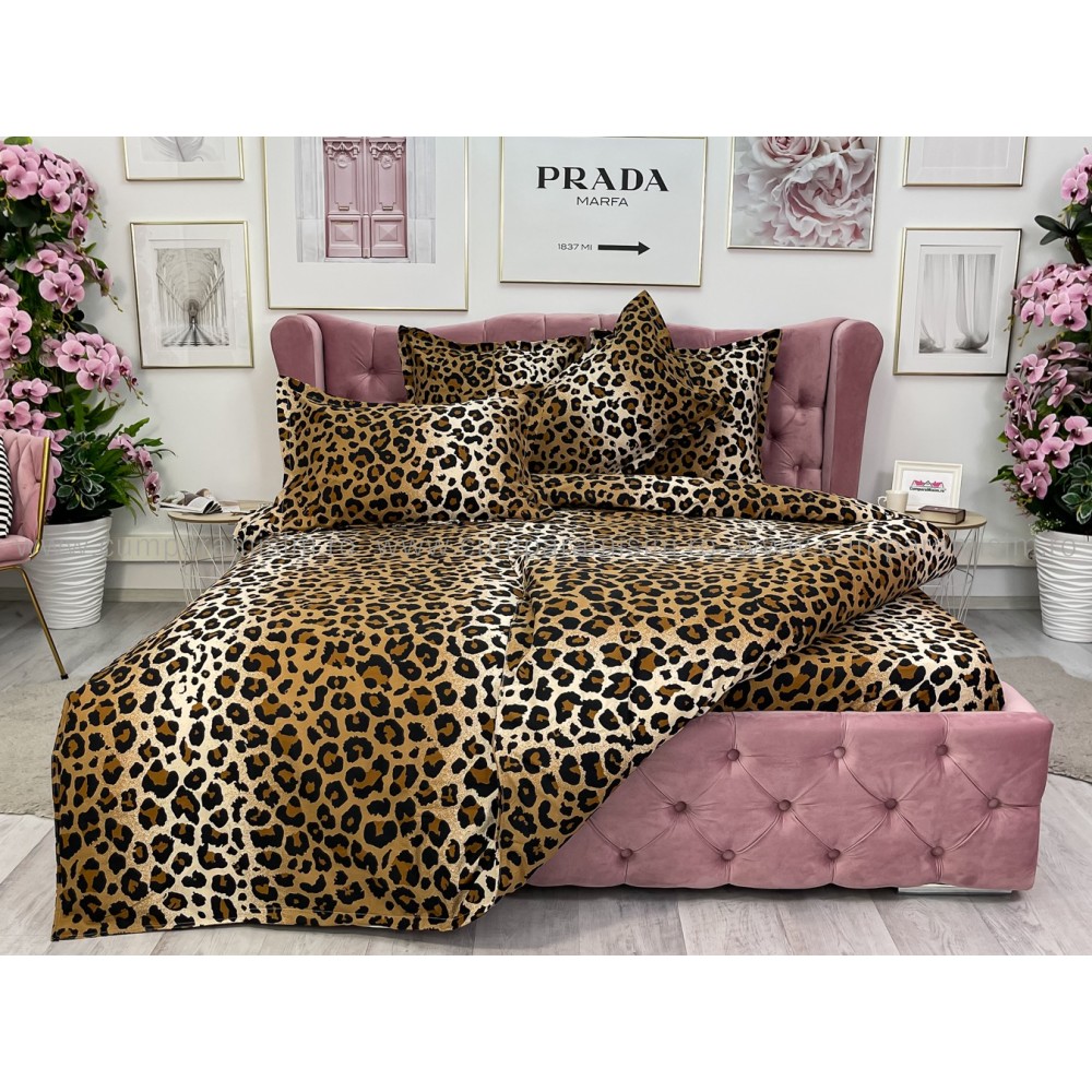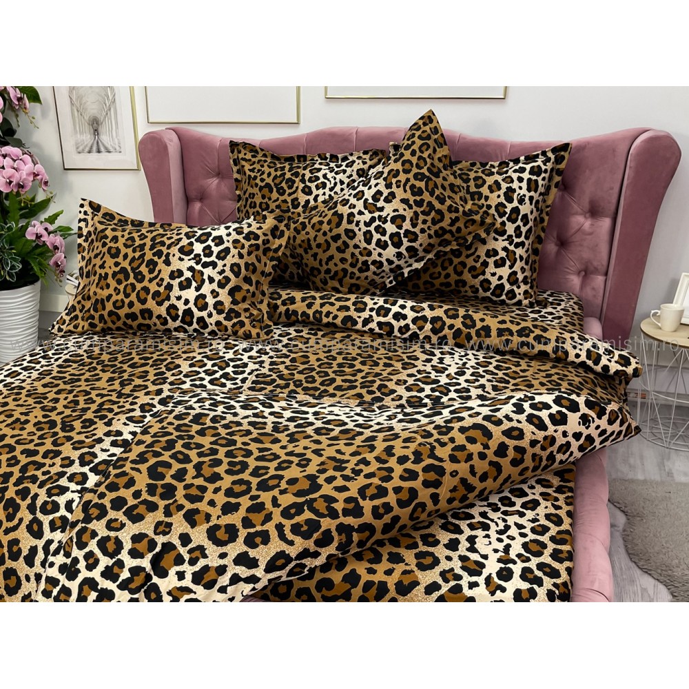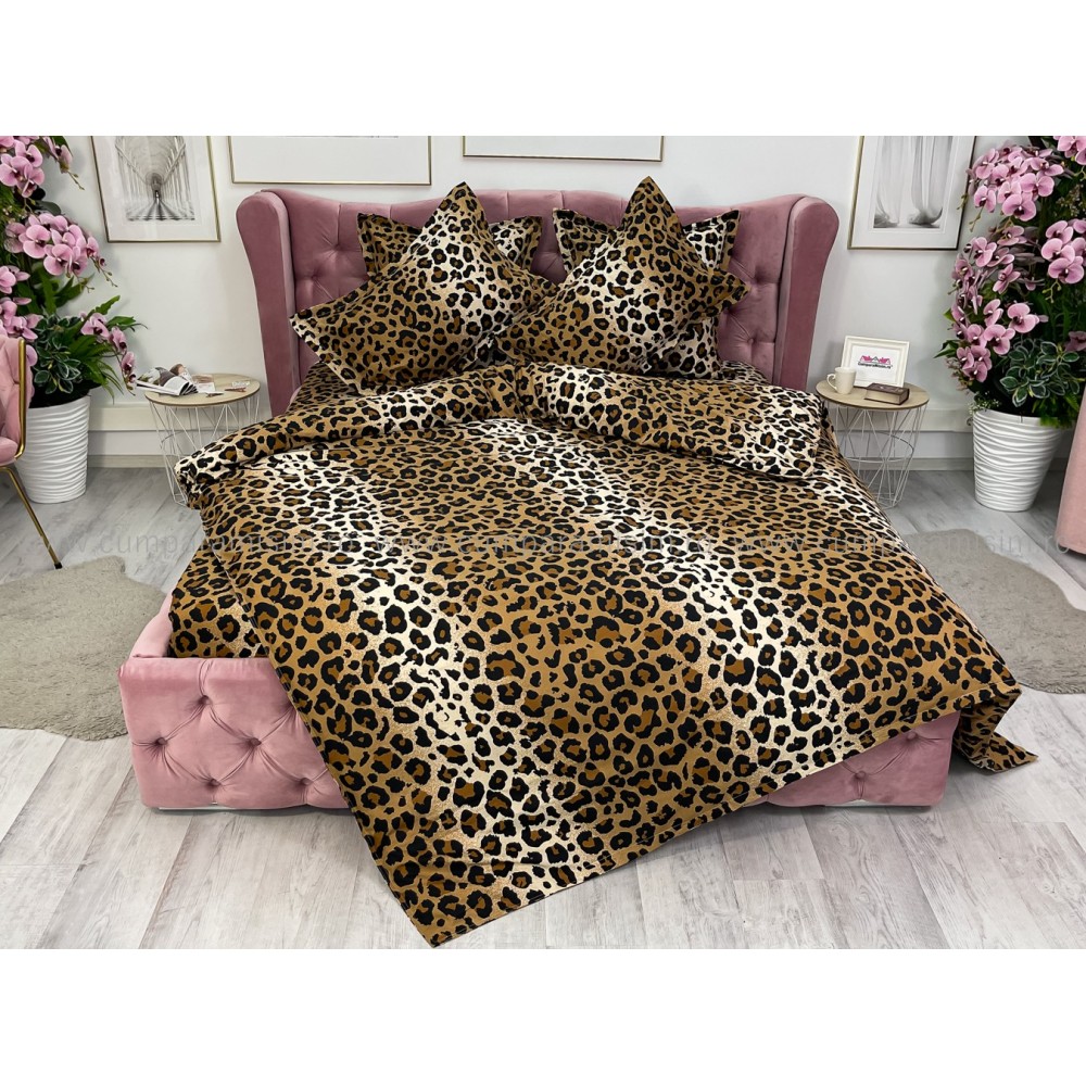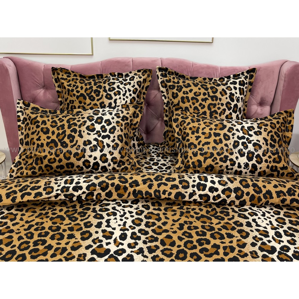 Lenjerie pat dublu, FINET, 6 piese, cu ELASTIC, Jojo Home, Maro-Multicolor, animal print, cod produs: JOJ-FE-05