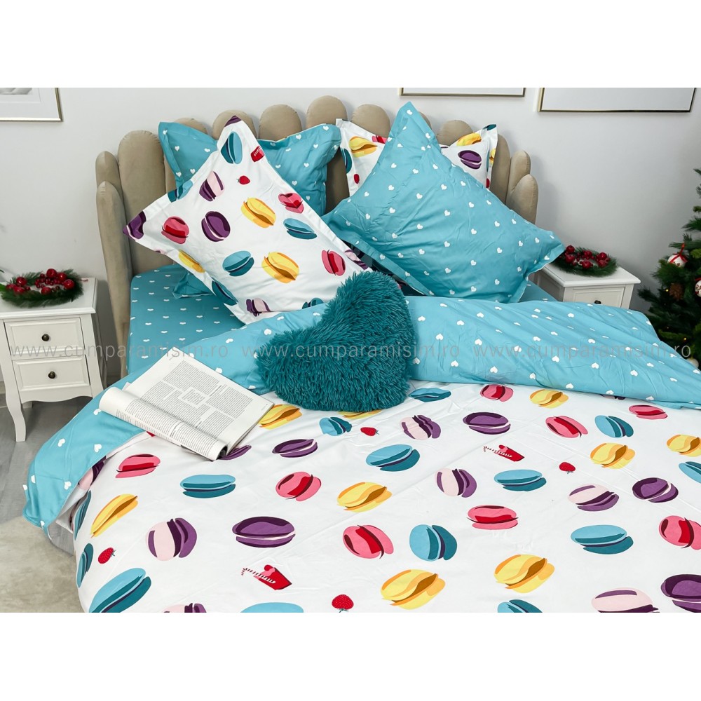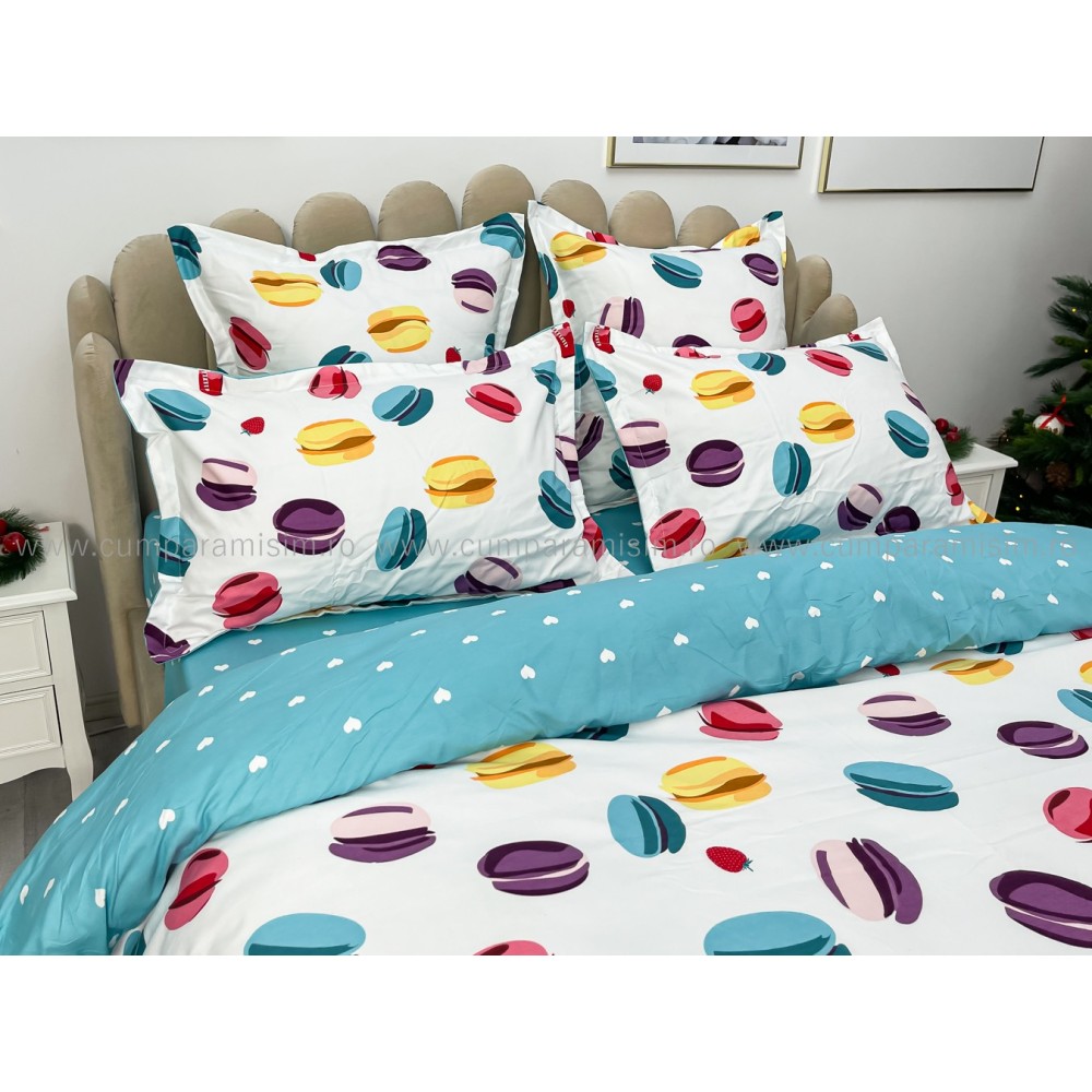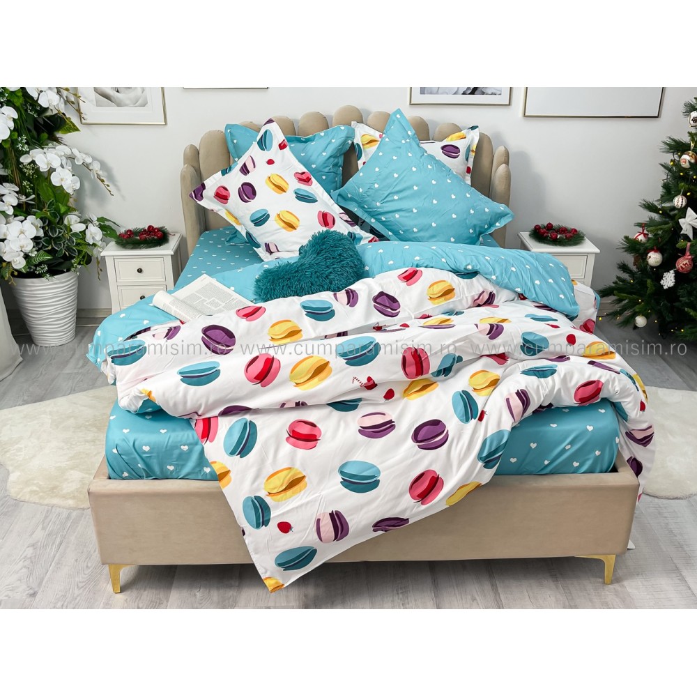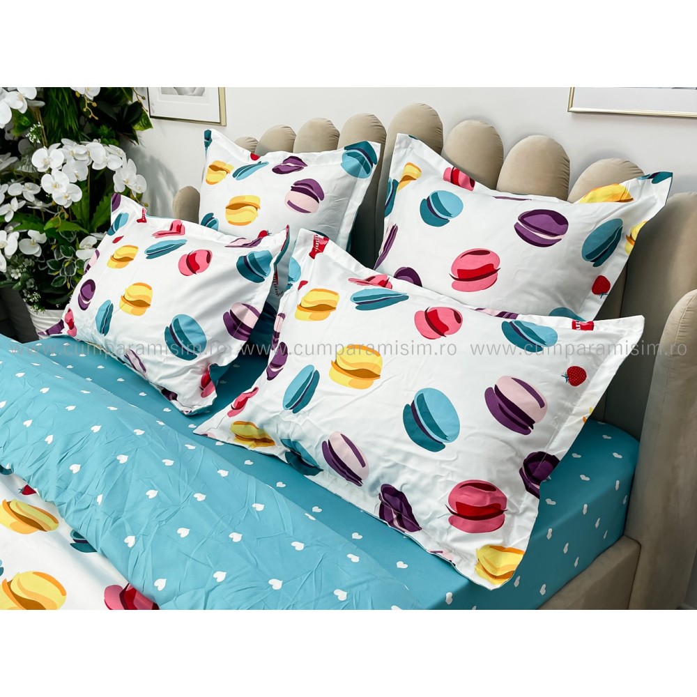Lenjerie pat dublu, FINET, 6 piese, cu ELASTIC, Jojo Home, Multicolor, macarons, cod produs: JOJ-FE-06