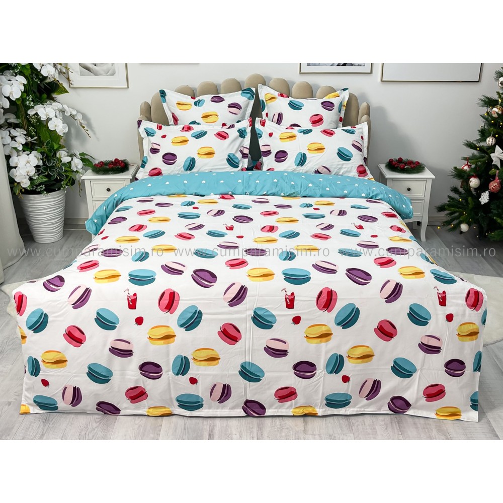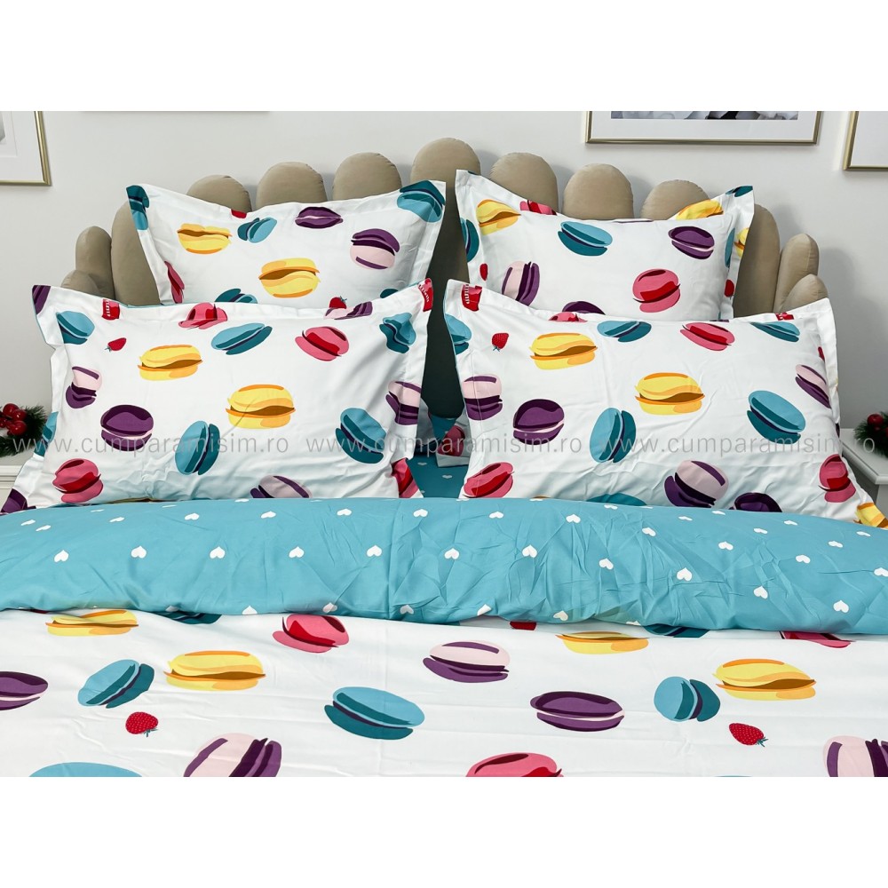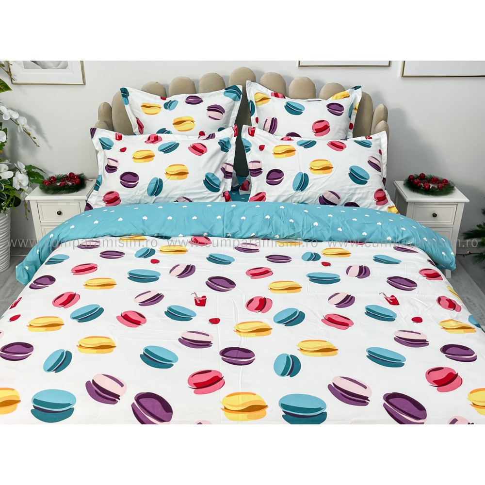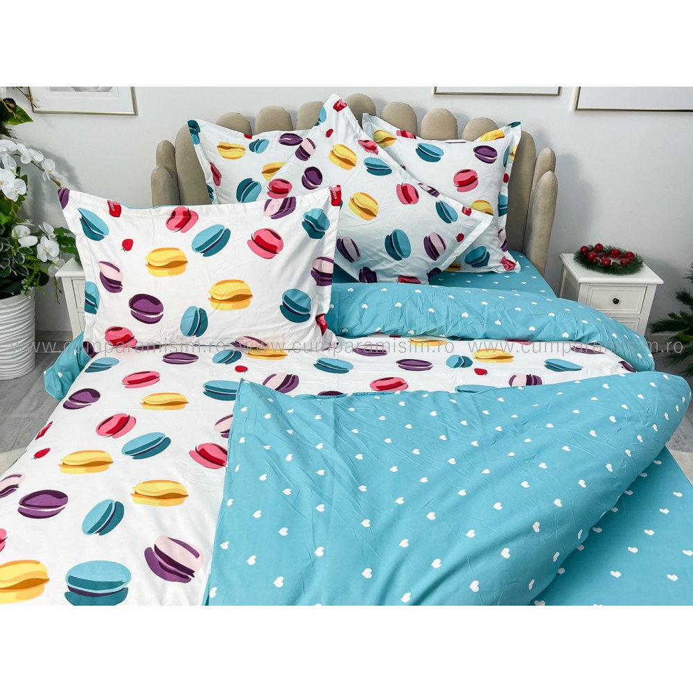 Lenjerie pat dublu, FINET, 6 piese, cu ELASTIC, Jojo Home, Multicolor, macarons, cod produs: JOJ-FE-06
