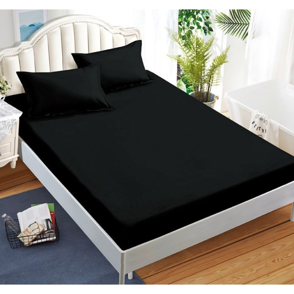 Lenjerie pat dublu cu ELASTIC, Finet, 6 piese, Negru, Johny Home Pucioasa, cod produs: SPR-T-194