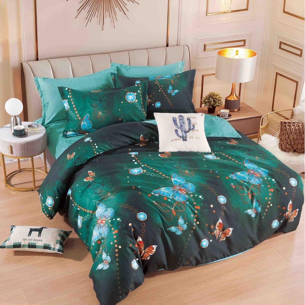 Lenjerie pat dublu, FINET, 6 piese, Jojo Home, Verde, fluturi, cod produs: JOJ-FN-35