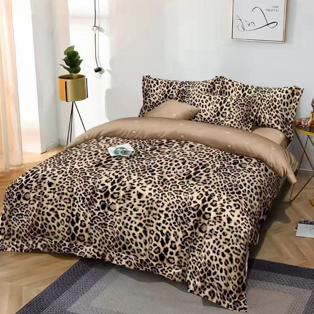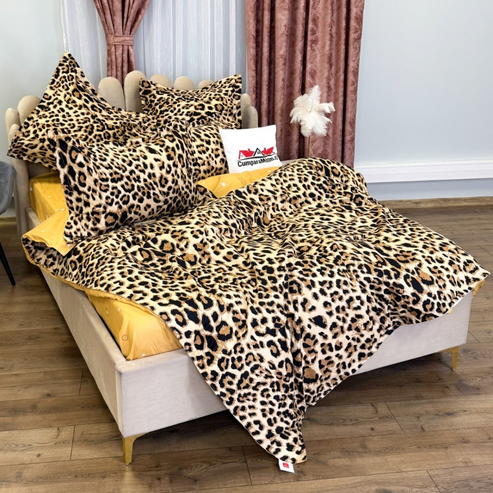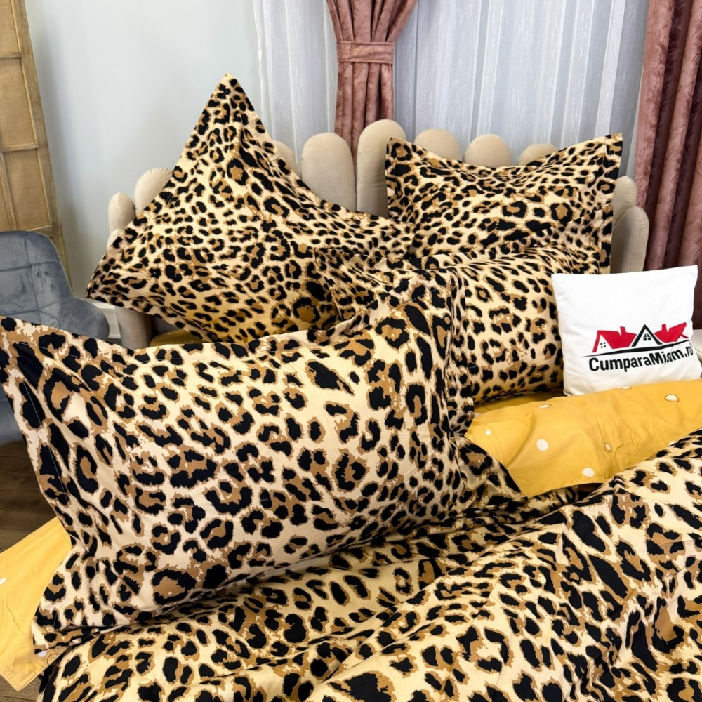 Lenjerie pat dublu (140x200cm, 160x200cm, 180x200cm), FINET, 6 piese, Maro, Negru, animal print, East Romania, cod produs: EST-FN-265