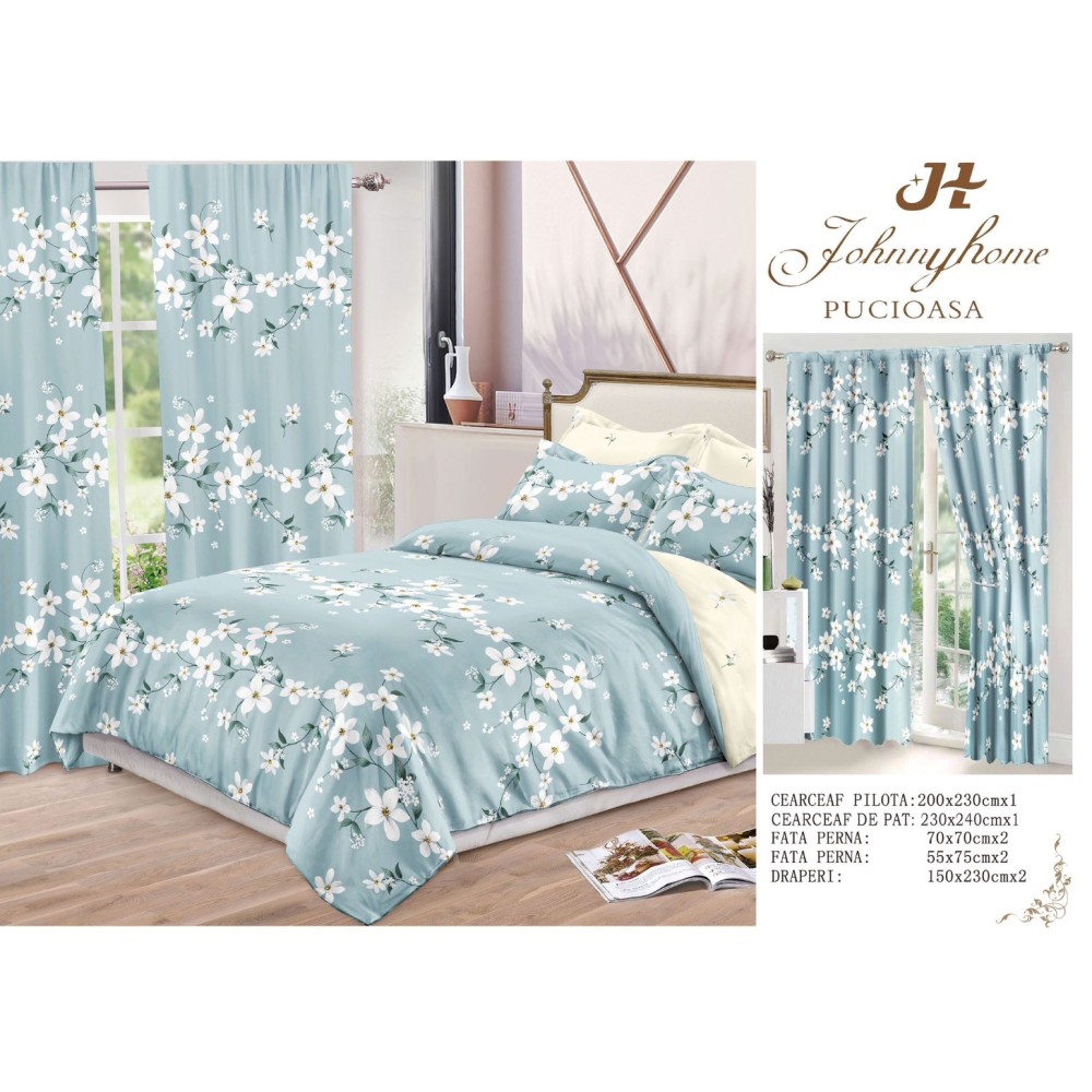 La CumparaMisim, calitatea și luxul sunt mereu la îndemână, la cele mai bune prețuri. Setul de lenjerie de pat și draperii îți transformă dormitorul într-un spațiu elegant și primitor, datorită designului unic și confortului oferit de materialele de înaltă calitate. Alegând acest set, te bucuri de un aspect uniform și plăcut, perfect pentru un dormitor modern.
