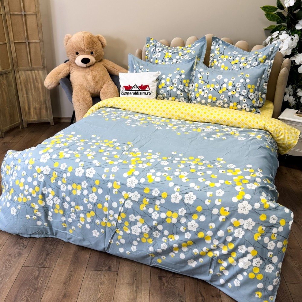 De asemenea, menționăm că fețele de pernă din seturile noastre pot include orice parte a designului lenjeriei, deoarece materialul este tăiat secvențial în timpul procesului de croială. Aceasta poate duce la variații de model între seturi.