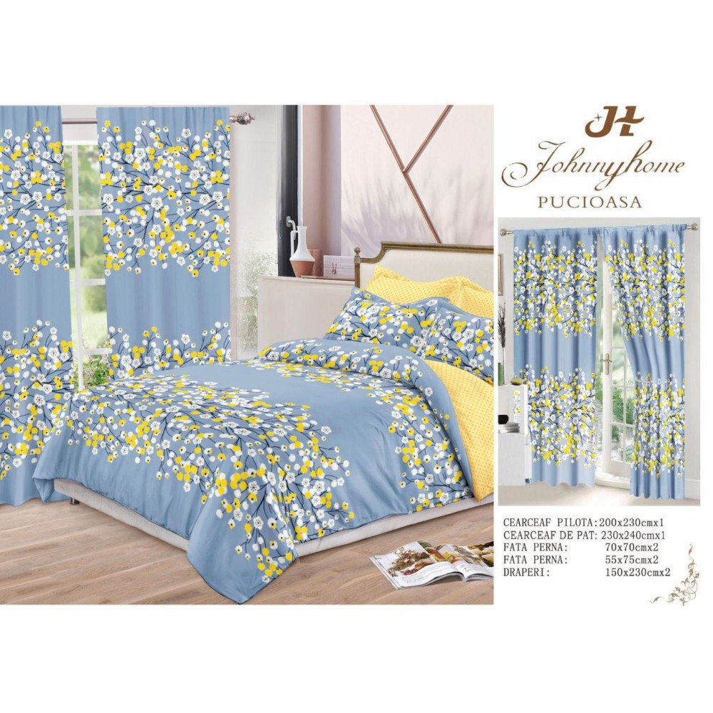 La CumparaMisim, calitatea și luxul sunt mereu la îndemână, la cele mai bune prețuri. Setul de lenjerie de pat și draperii îți transformă dormitorul într-un spațiu elegant și primitor, datorită designului unic și confortului oferit de materialele de înaltă calitate. Alegând acest set, te bucuri de un aspect uniform și plăcut, perfect pentru un dormitor modern.
