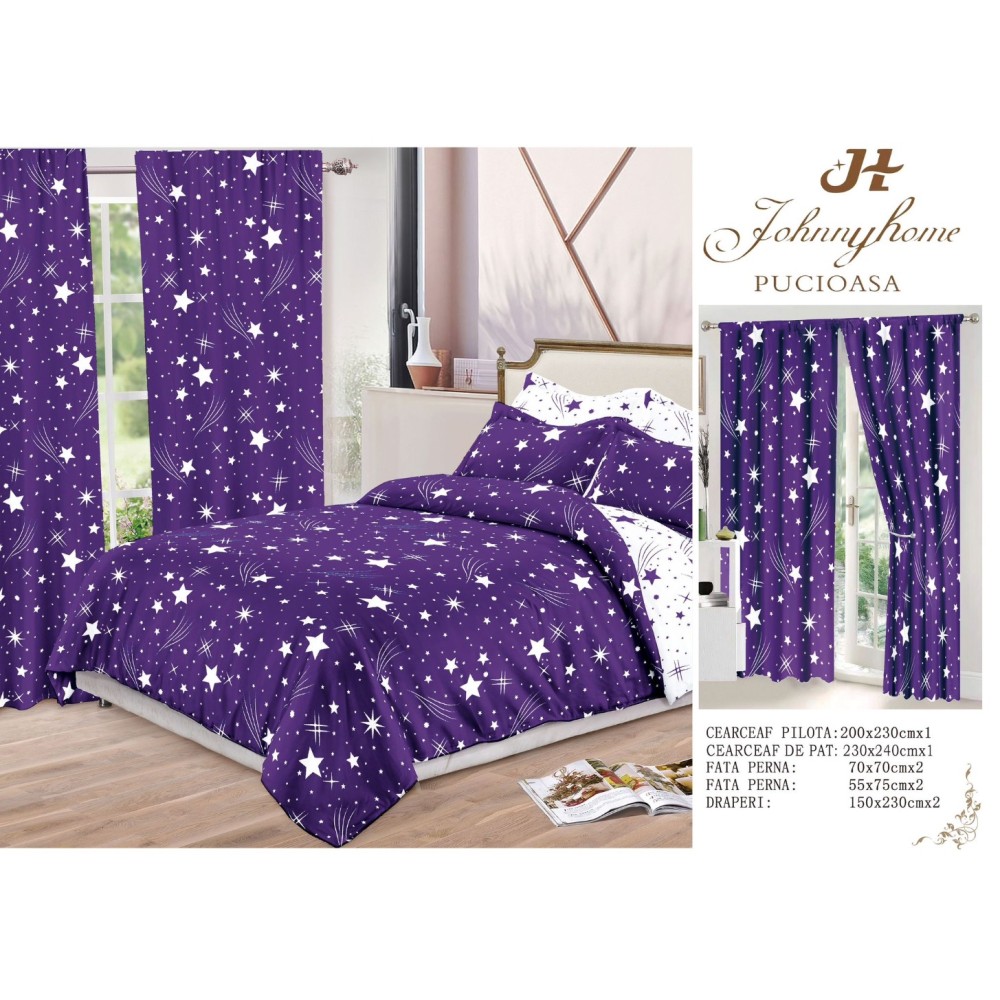 La CumparaMisim, calitatea și luxul sunt mereu la îndemână, la cele mai bune prețuri. Setul de lenjerie de pat și draperii îți transformă dormitorul într-un spațiu elegant și primitor, datorită designului unic și confortului oferit de materialele de înaltă calitate. Alegând acest set, te bucuri de un aspect uniform și plăcut, perfect pentru un dormitor modern.