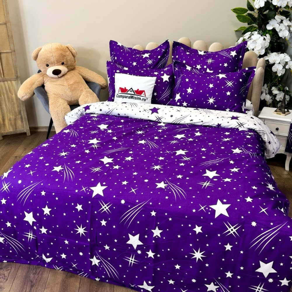 Îți prezentăm un set complet de lenjerie de pat din finet, format din 8 piese, inclusiv 2 draperii cu rejansă pentru o fixare ușoară pe bară. Acest set unic are un design elegant și rafinat, care se regăsește atât pe lenjeria de pat, cât și pe draperii, oferind o armonie vizuală perfectă în dormitorul tău.