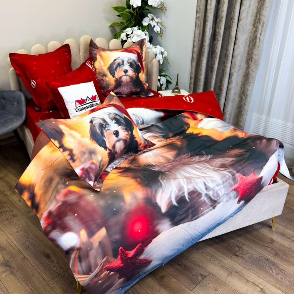 Lenjerie de pat Crăciun din bumbac 100% finet - Confort și Eleganță Festivă