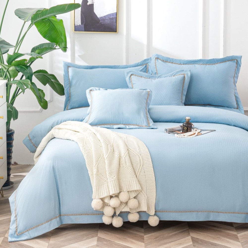 Lenjerie Pat Dublu, Bumbac Neted Fin, cu Bordura din Broderie Rafinata, CEARSAF CU ELASTIC, 6 piese, Bleu, Insula Lenjeriei, cod produs: INS-BNB04