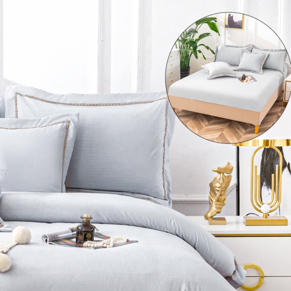 Transformă-ți dormitorul într-un sanctuar al relaxării cu lenjeria noastră de pat luxury, realizată din bumbac 100% neted, cu o textură fină și plăcută la atingere. Accesorizată cu o bordură elegantă din dantelă aplicată manual, această lenjerie este definită de detalii sofisticate și o calitate excepțională.