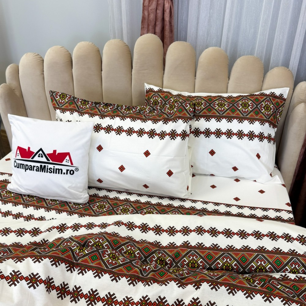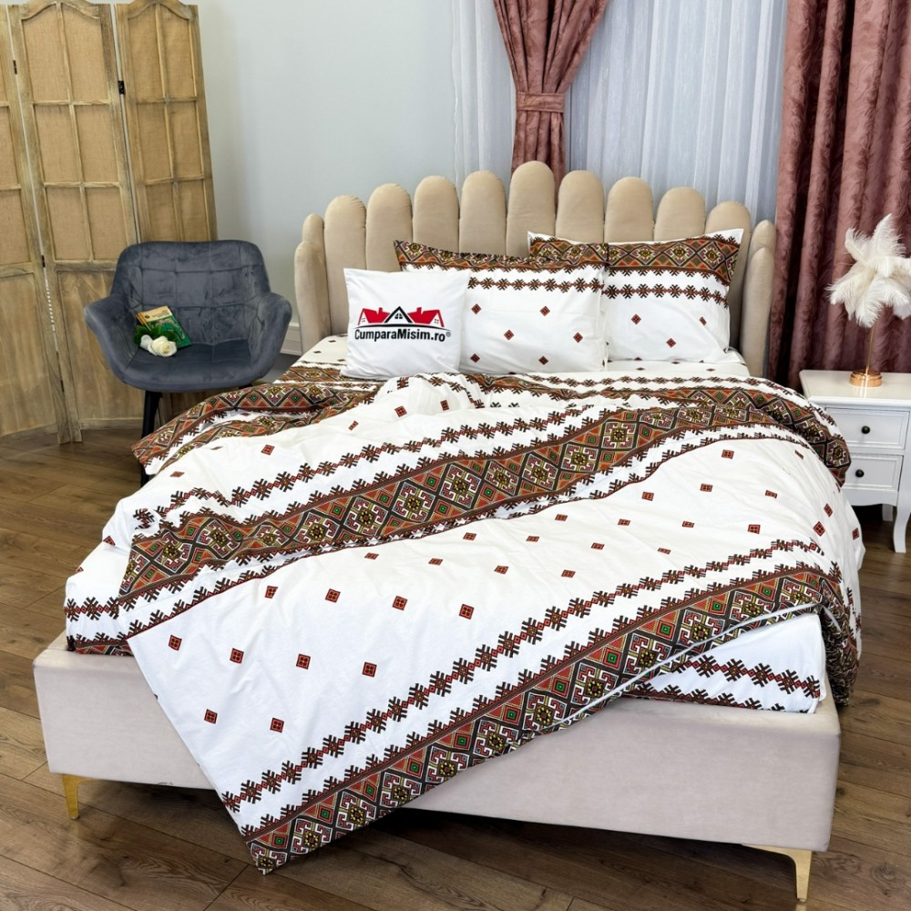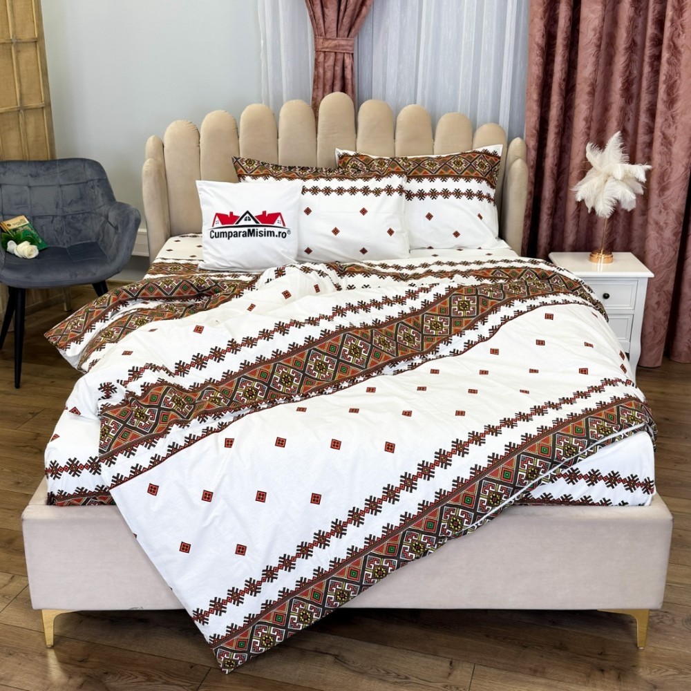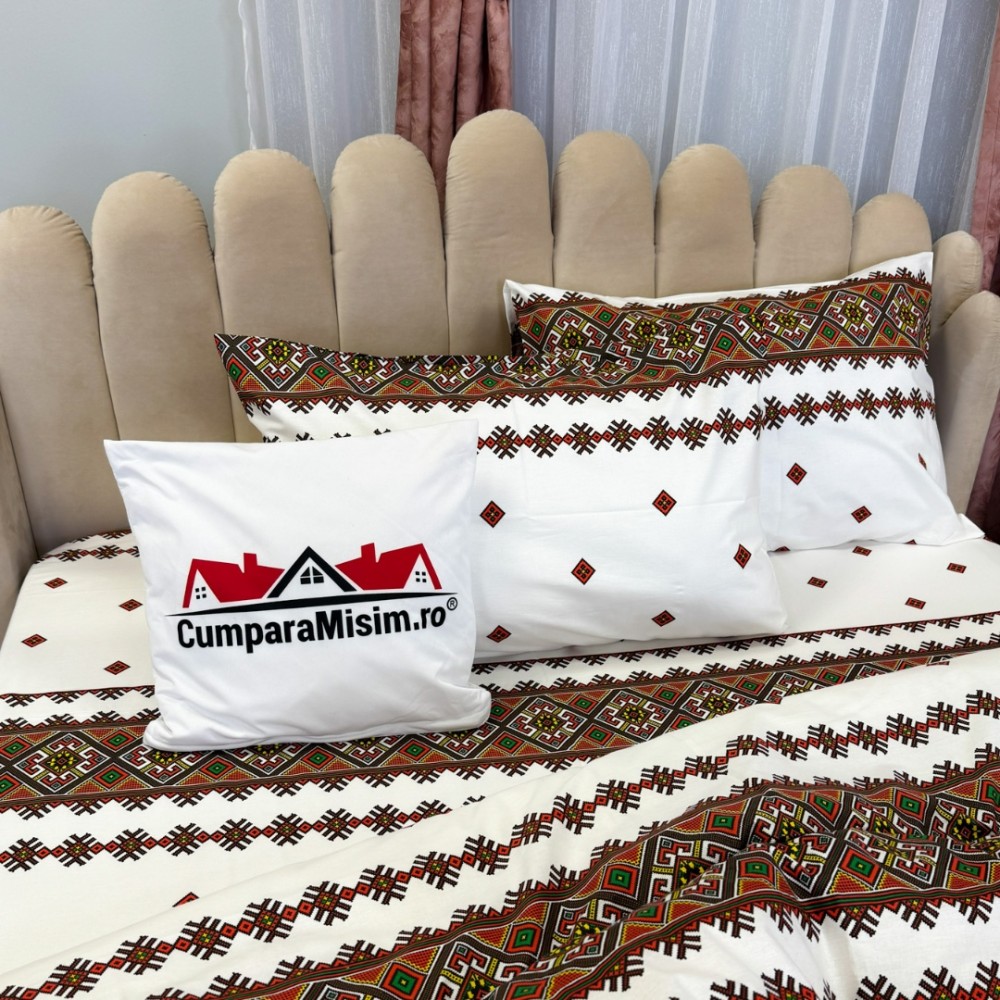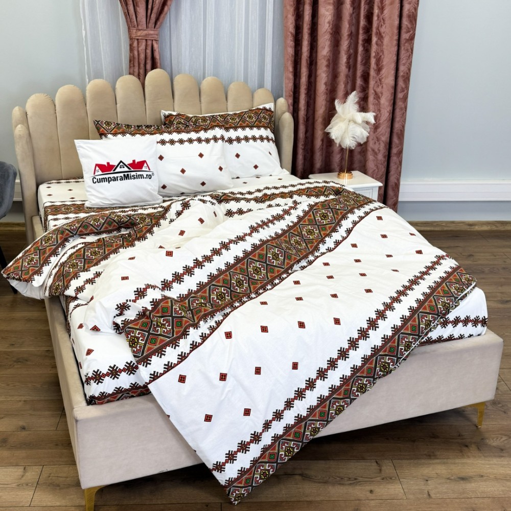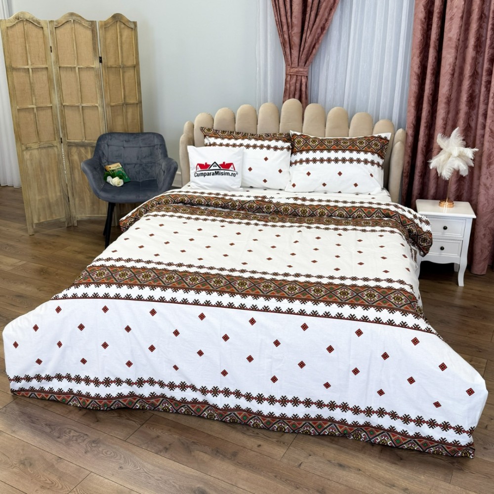Lenjerie de pat dublu din bumbac ranforce - 4 piese, croită cu grijă în atelierul Cumparamisim
