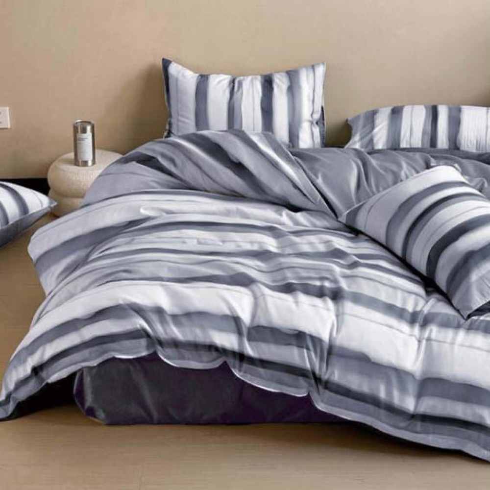 Lenjerie pat dublu, bumbac satinat, 4 piese, Alb, Albastru, dungi, Talo, cod produs: SKT-SN-57