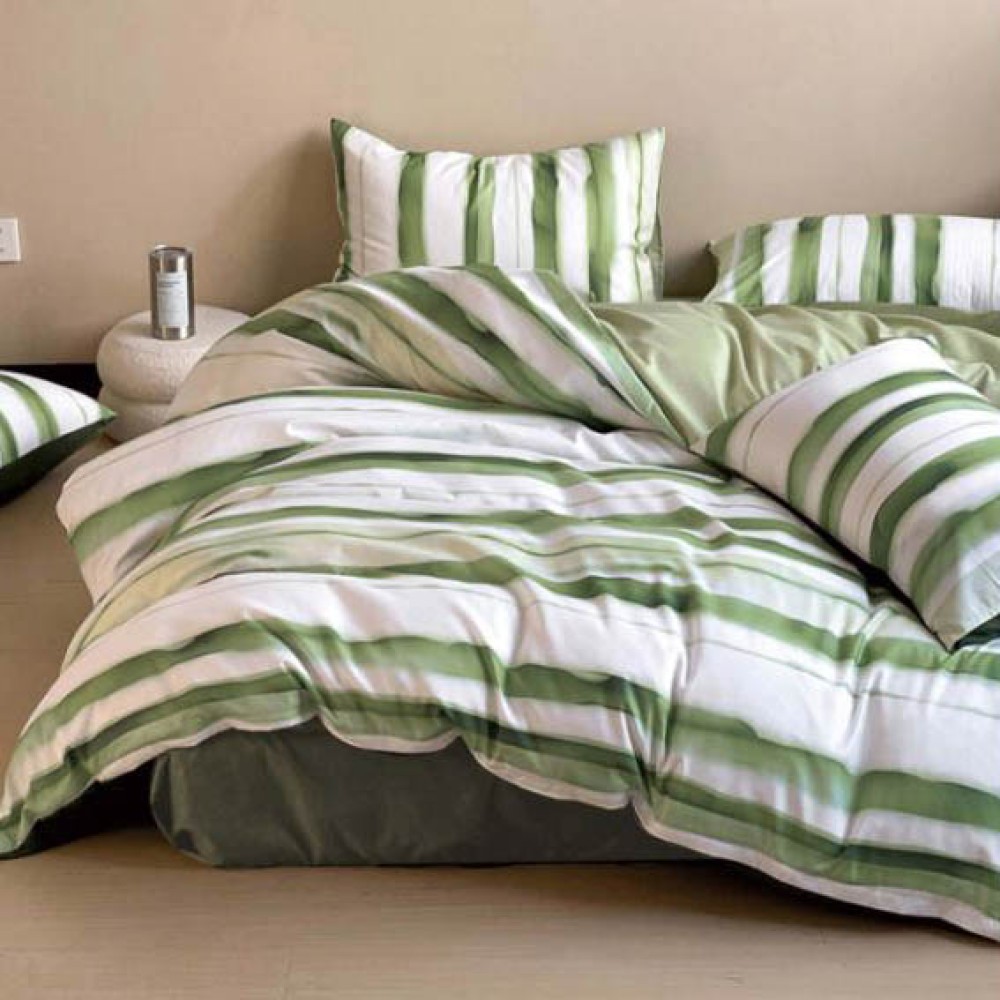 Lenjerie pat dublu, bumbac satinat, 4 piese, Alb, Verde, dungi, Talo, cod produs: SKT-SN-36