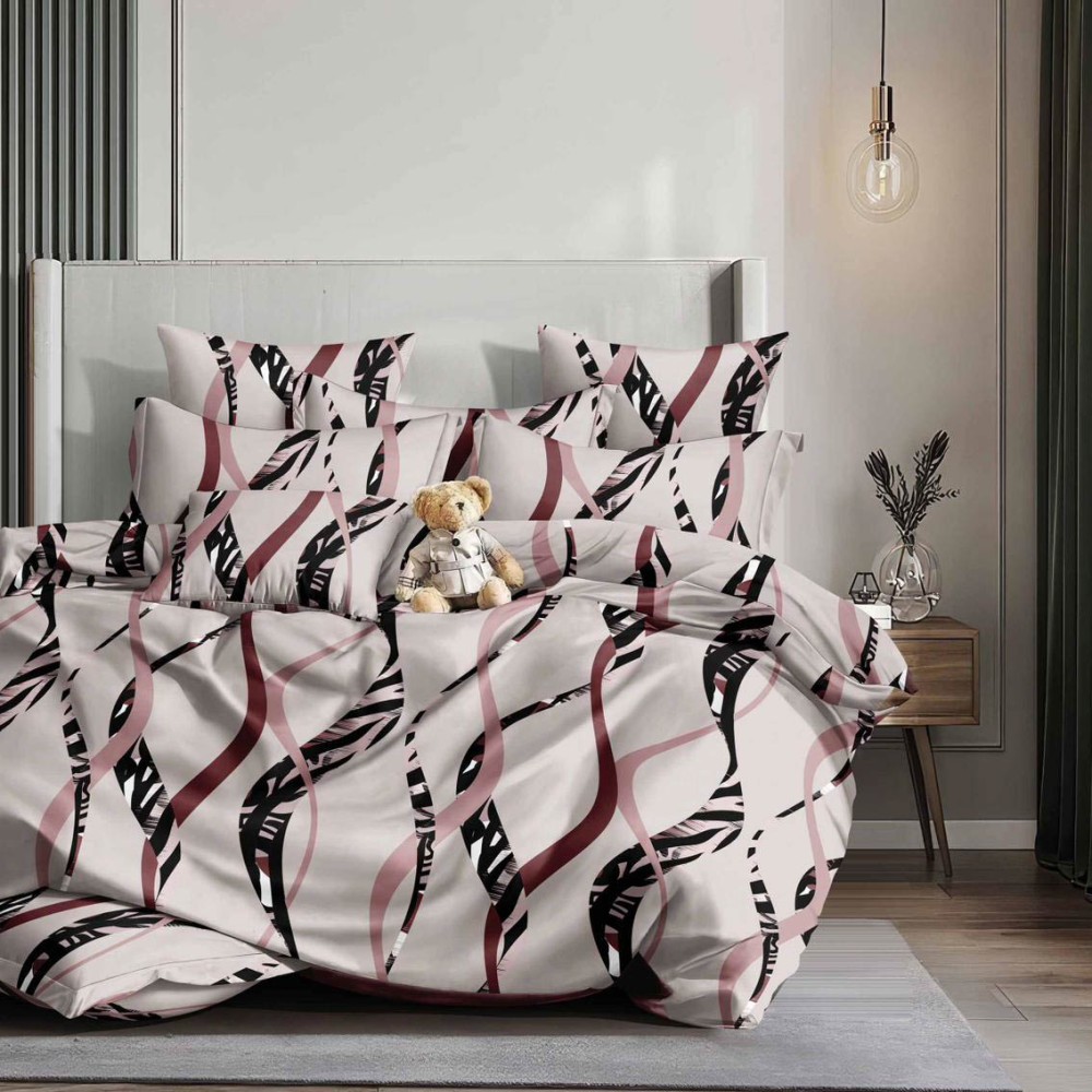 Lenjerie pat dublu, bumbac satinat, 4 piese, Crem, abstract, Talo, cod produs: SKT-SN-46