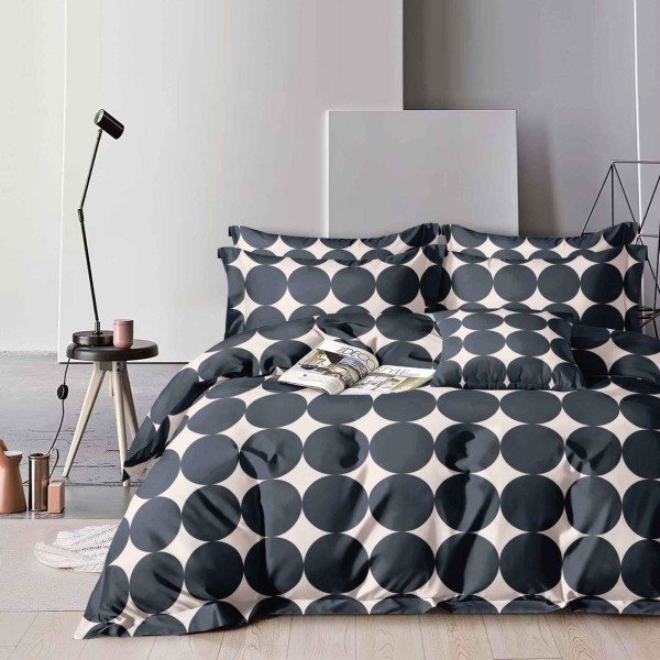 Lenjerie pat dublu, bumbac satinat, 4 piese, Gri, buline, Talo, cod produs: SKT-SN-14