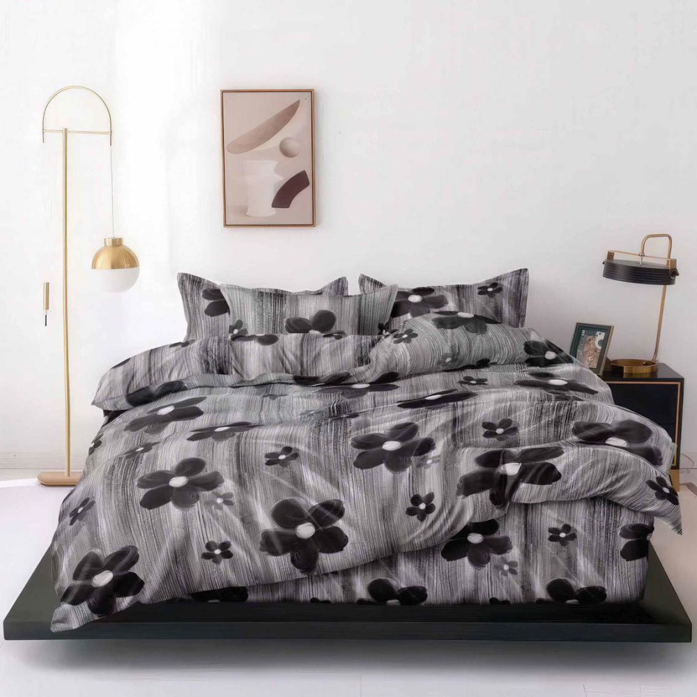 Lenjerie pat dublu, bumbac satinat, 4 piese, Gri, flori, Talo, cod produs: SKT-SN-56