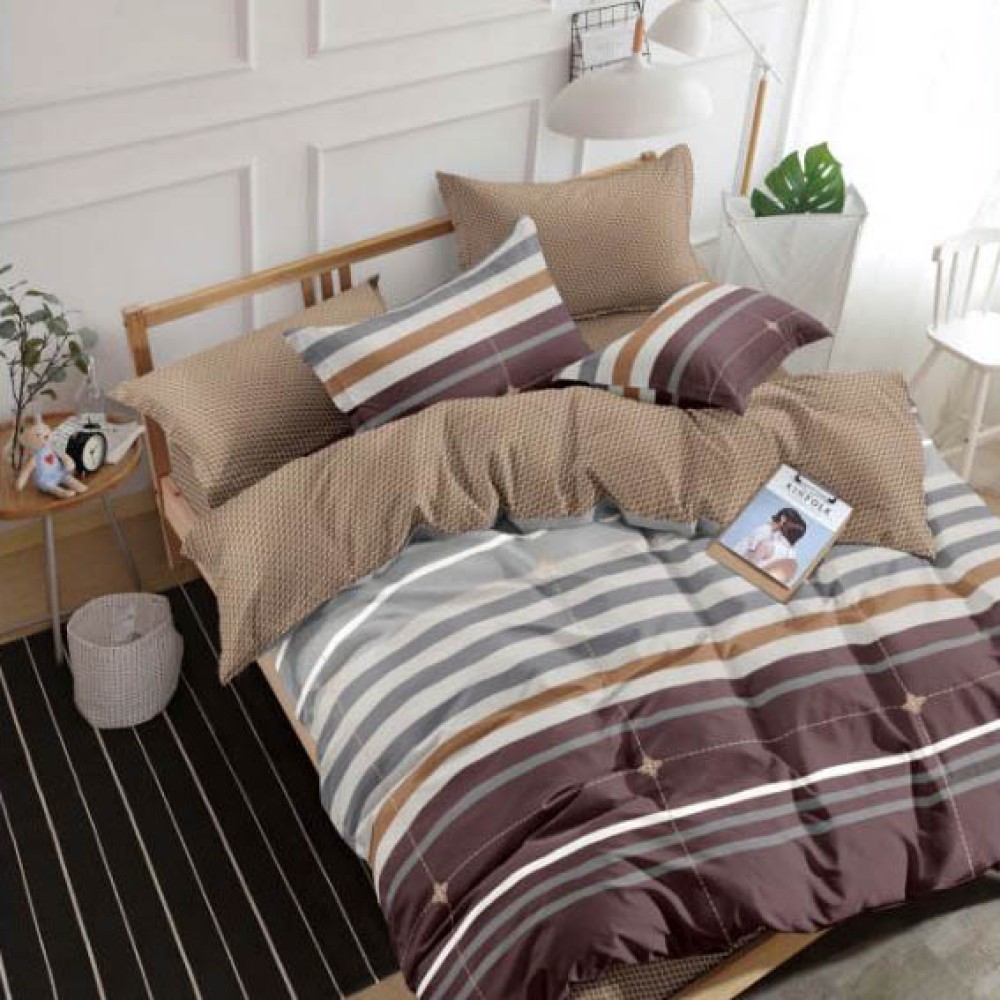 Lenjerie pat dublu, bumbac satinat, 4 piese, Maro, dungi, Talo, cod produs: SKT-SN-29