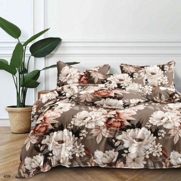Lenjerie pat dublu, bumbac satinat, 4 piese, Maro, flori, Talo, cod produs: SKT-SN-24