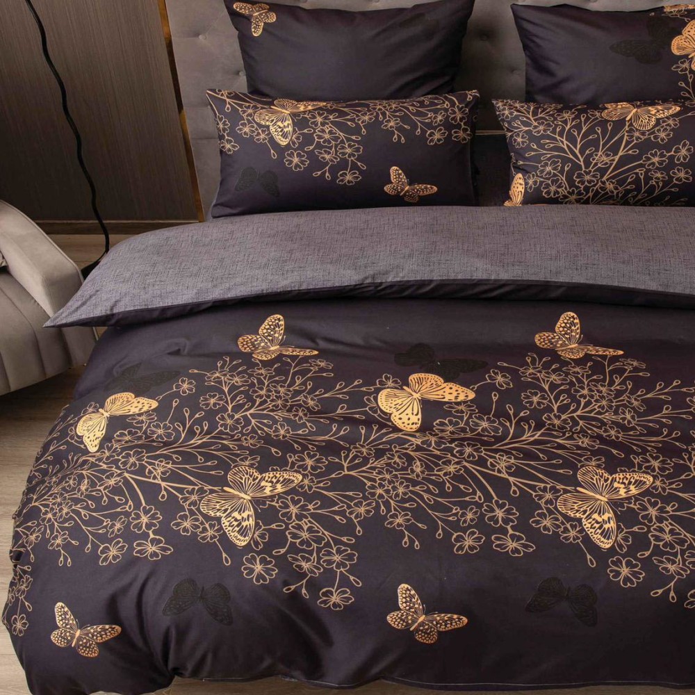 Lenjerie pat dublu, bumbac satinat, 4 piese, Negru, fluturi, Talo, cod produs: SKT-SN-32