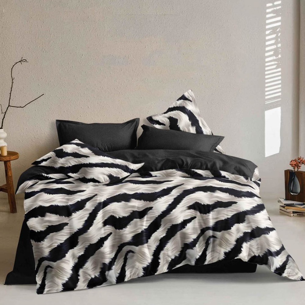 Lenjerie pat dublu, bumbac satinat, 4 piese, Negru, Gri, animal print, Talo, cod produs: SKT-SN-60