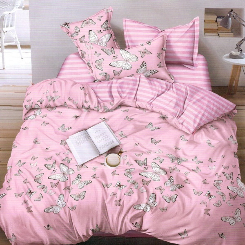 Lenjerie pat dublu, bumbac satinat, cearsaf clasic, 4 piese, cod produs: BF-10