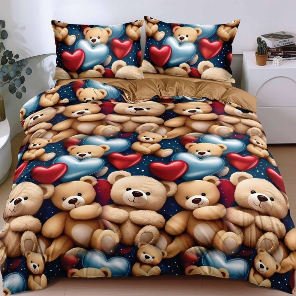 Lenjerie pat dublu, bumbac satinat, cearsaf clasic, 4 piese, Maro, ursuleti, Johny Home Pucioasa, cod produs: SPR-A50-707