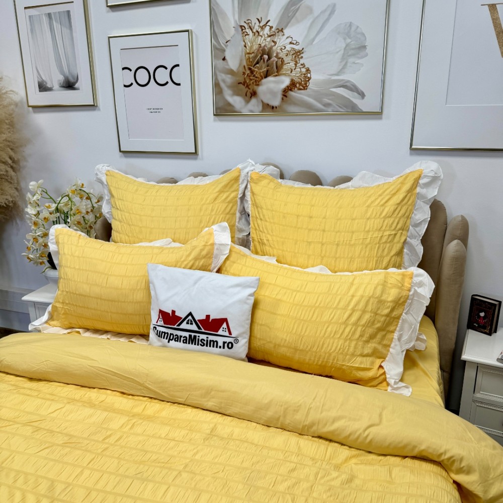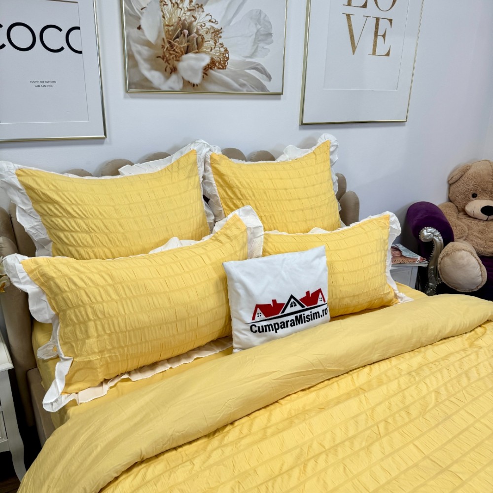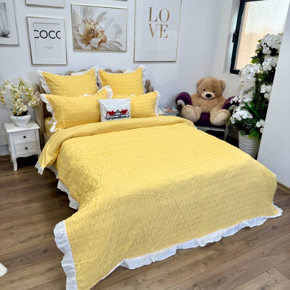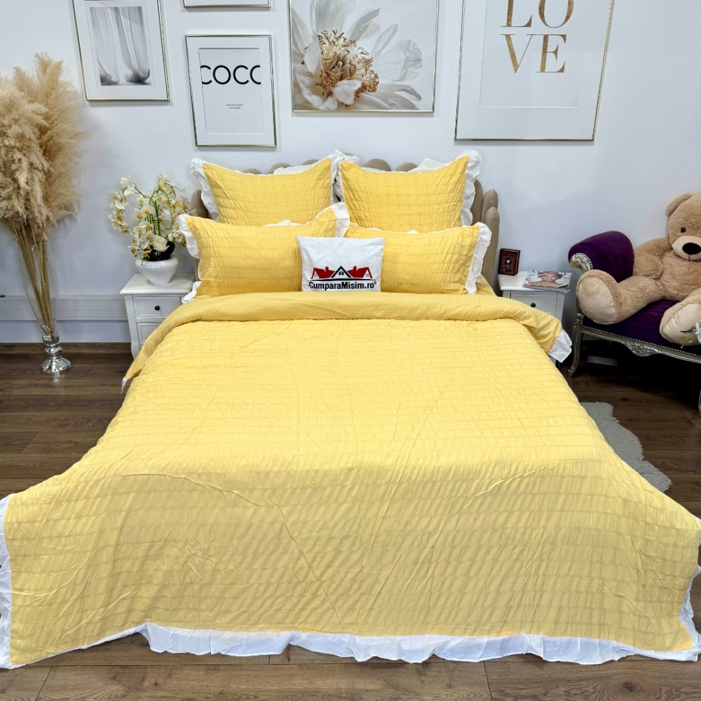 Lenjerie pat dublu, Soft Touch CREPONAT DELUXE, 6 piese, Jojo Home, Galben, cod produs: JOJ-CRE-08