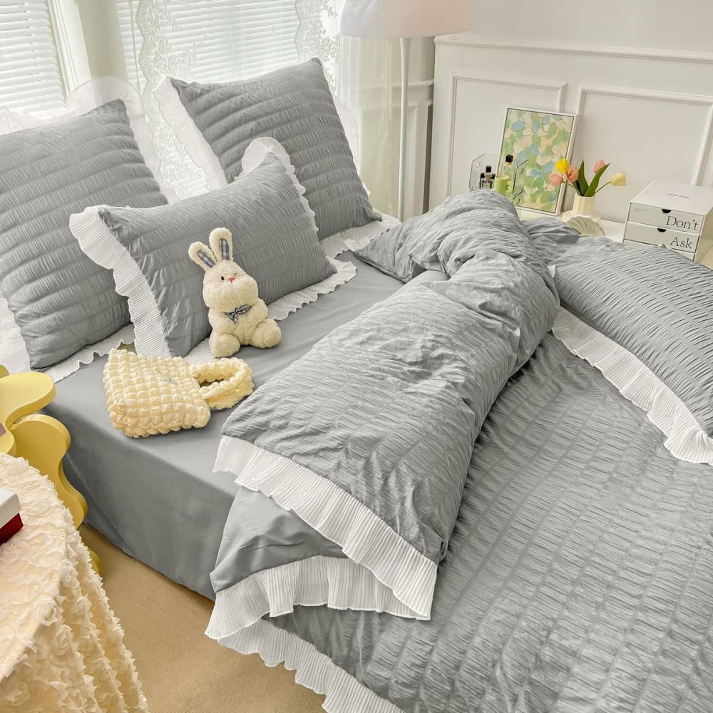 - Aspect Elegant: Designul creponat deluxe adaugă un aspect rafinat și elegant lenjeriei, transformând aspectul întregului dormitor. Aceste lenjerii pot îmbunătăți instantaneu atmosfera camerei tale.