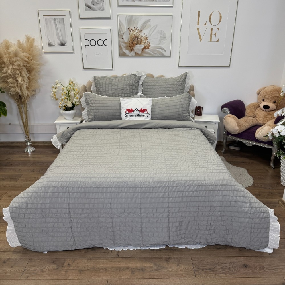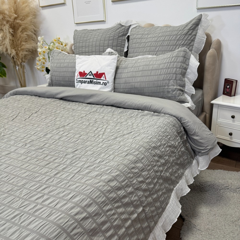 Experimentează confortul într-o nouă dimensiune, datorită bumbacului fin și calității creponate deluxe, care nu doar îmbunătățesc calitatea somnului tău, dar adaugă și o notă de eleganță în orice încăpere. Indiferent dacă dorești să revigorezi aspectul camerei tale sau pur și simplu să te înfășori în lux în timpul odihnei, această lenjerie de pat este alegerea perfectă.