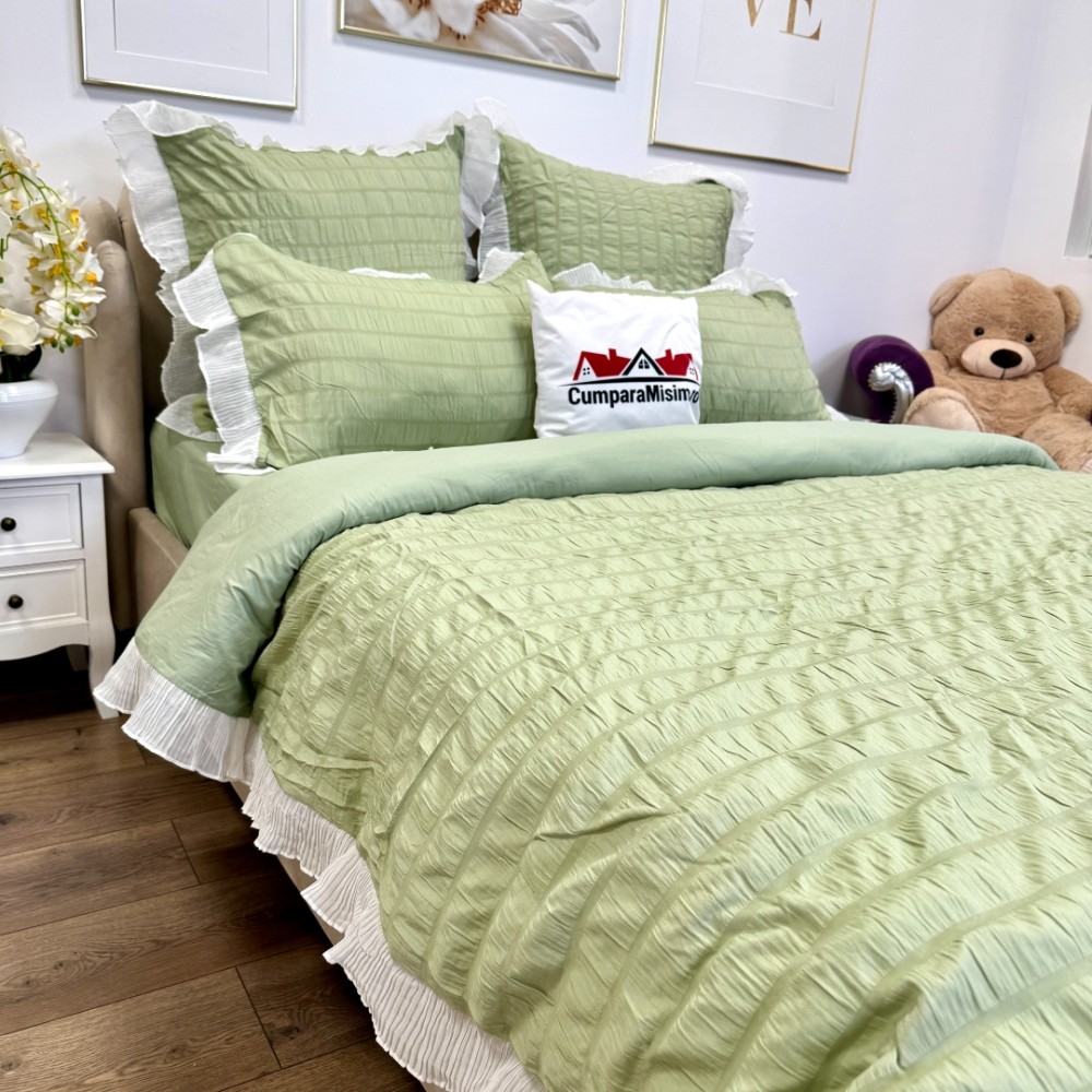 Experimentează confortul într-o nouă dimensiune, datorită bumbacului fin și calității creponate deluxe, care nu doar îmbunătățesc calitatea somnului tău, dar adaugă și o notă de eleganță în orice încăpere. Indiferent dacă dorești să revigorezi aspectul camerei tale sau pur și simplu să te înfășori în lux în timpul odihnei, această lenjerie de pat este alegerea perfectă.
