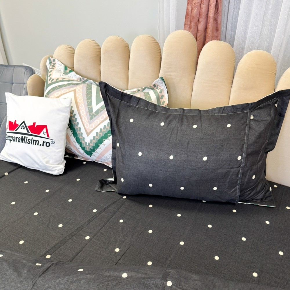 - Aspect mat elegant: Designul mat confera lenjeriilor un aspect sofisticat si sobru, potrivindu-se perfect in orice stil de decor interior si adaugand o nota de rafinament in dormitorul tau.