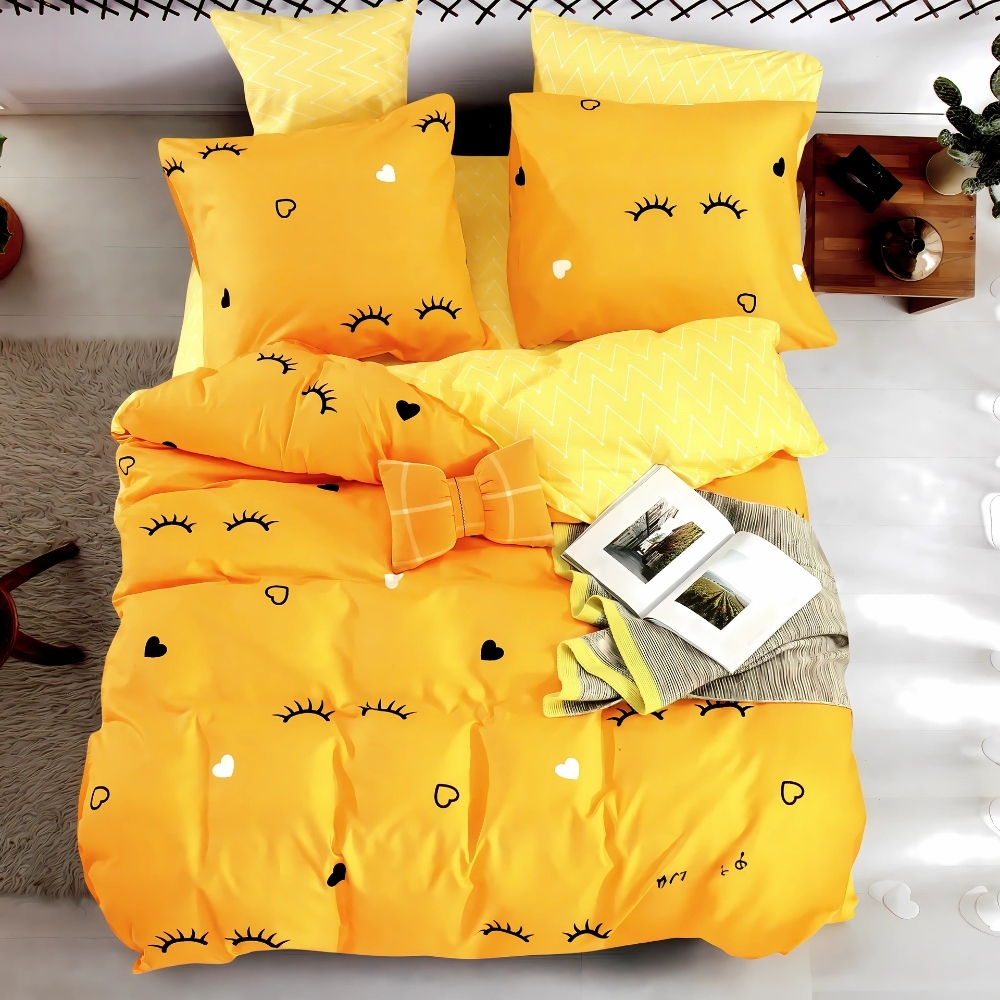 Lenjerie pat dublu, bumbac satinat, cu doua feţe, 4 piese, Galben, inimioare, gene, Casa Creative Elegance Pucioasa, cod produs: BCC-LBS121