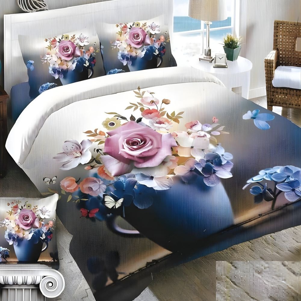 Lenjerie 3D pentru pat de 2 persoane, confectionata din microfibra, cu tesatura deasa, fina, placuta la atingere. Acest tip de imprimeu, este realizat cu o inovativa metoda de printare, astfel incat ofera senzatia ca imprimeul este in relief, datorita nuantelor folosite si combinate perfect, pentru ca dumneavoastra sa va puteti bucura de un asternut iesit din comun.