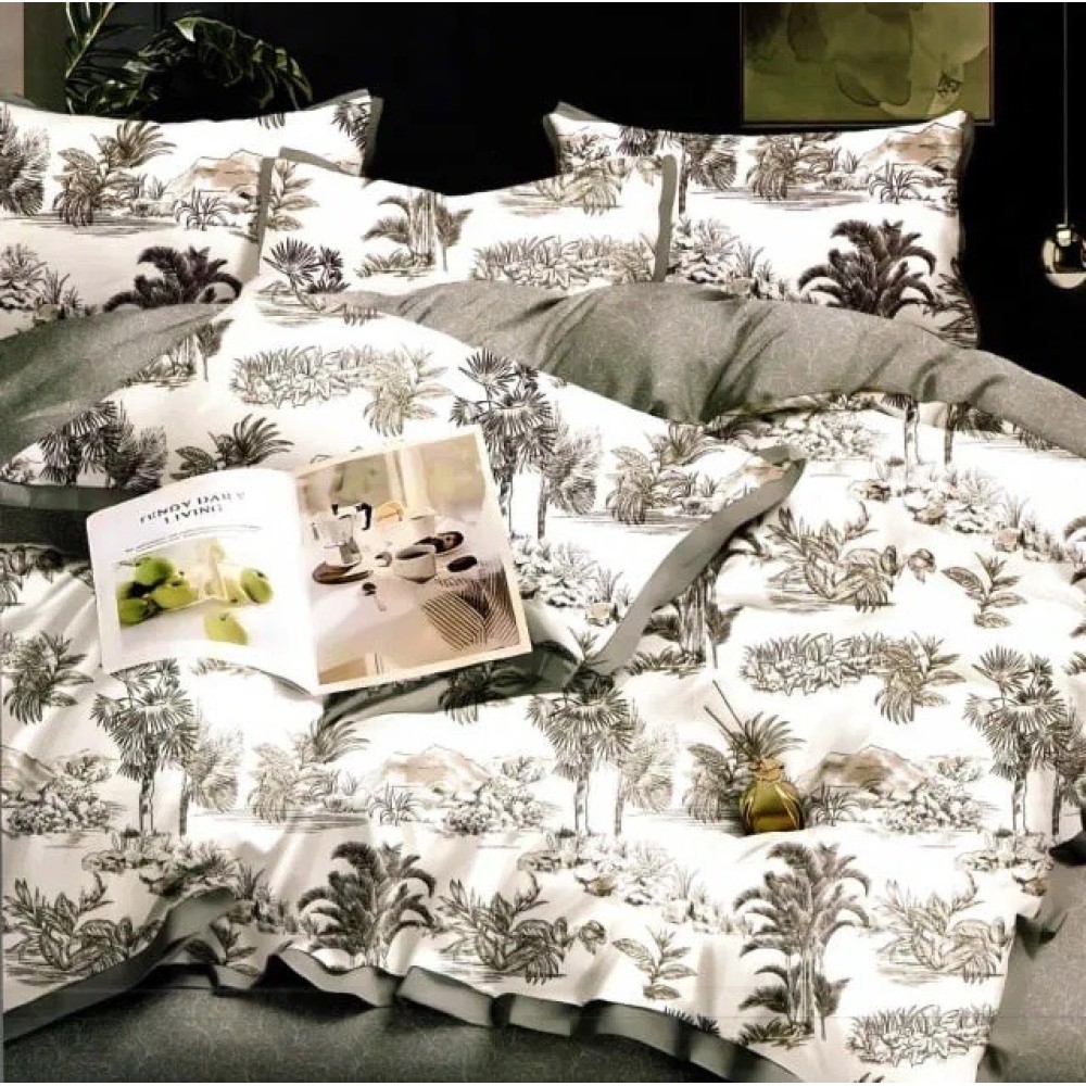 Lenjerie pat dublu, bumbac satinat, cu doua feţe, 4 piese, Alb, Gri, Jungla, Casa Creative Elegance Pucioasa, cod produs: BCC-LBS26