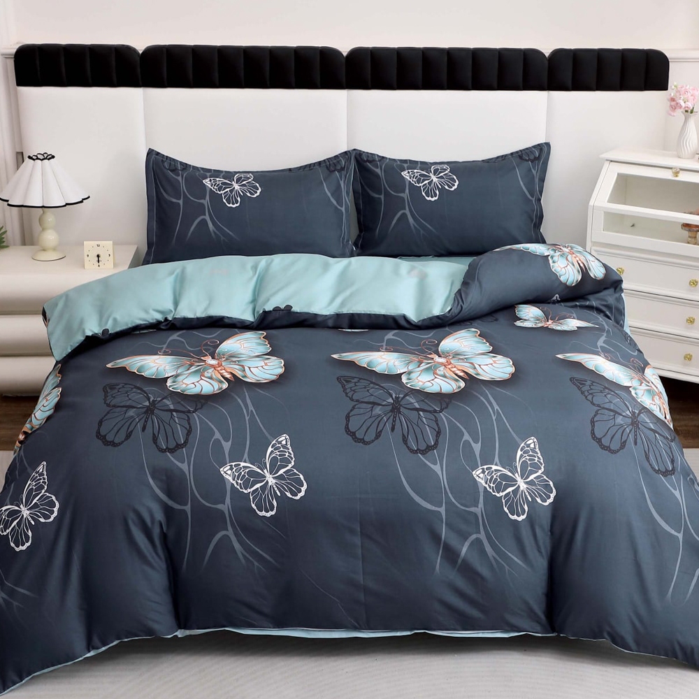 Lenjerie pat dublu cu Elastic, bumbac satinat, Albastru, fluturi, Casa Creative Elegance Pucioasa, cod produs: BCC-SE-05
