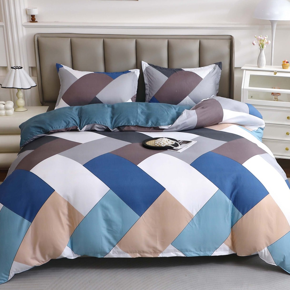 Lenjerie pat dublu cu Elastic, bumbac satinat, Bej, Albastru, dreptunghiuri, Casa Creative Elegance Pucioasa, cod produs: BCC-SE-03