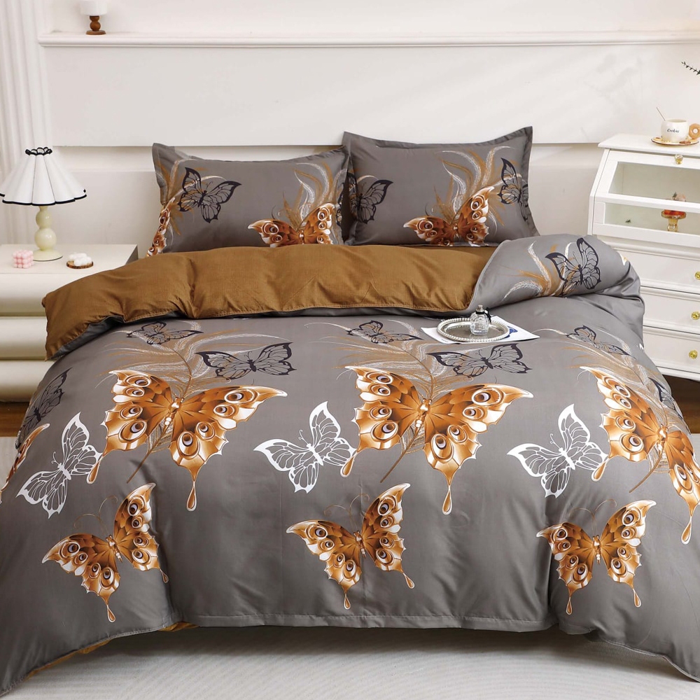 Lenjerie pat dublu cu Elastic, bumbac satinat, Bej, Caramiziu, fluturi, Casa Creative Elegance Pucioasa, cod produs: BCC-SE-24