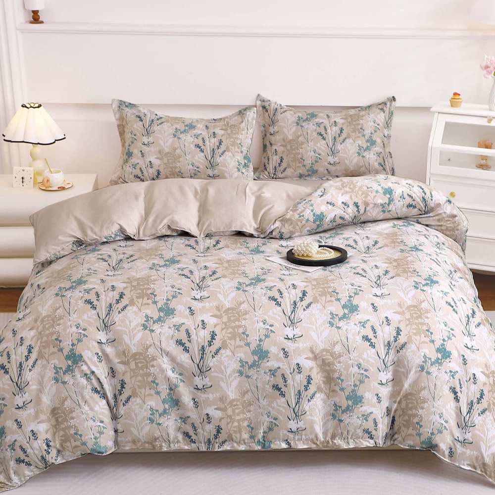 Lenjerie pat dublu cu Elastic, bumbac satinat, Bej, flori, Casa Creative Elegance Pucioasa, cod produs: BCC-SE-04
