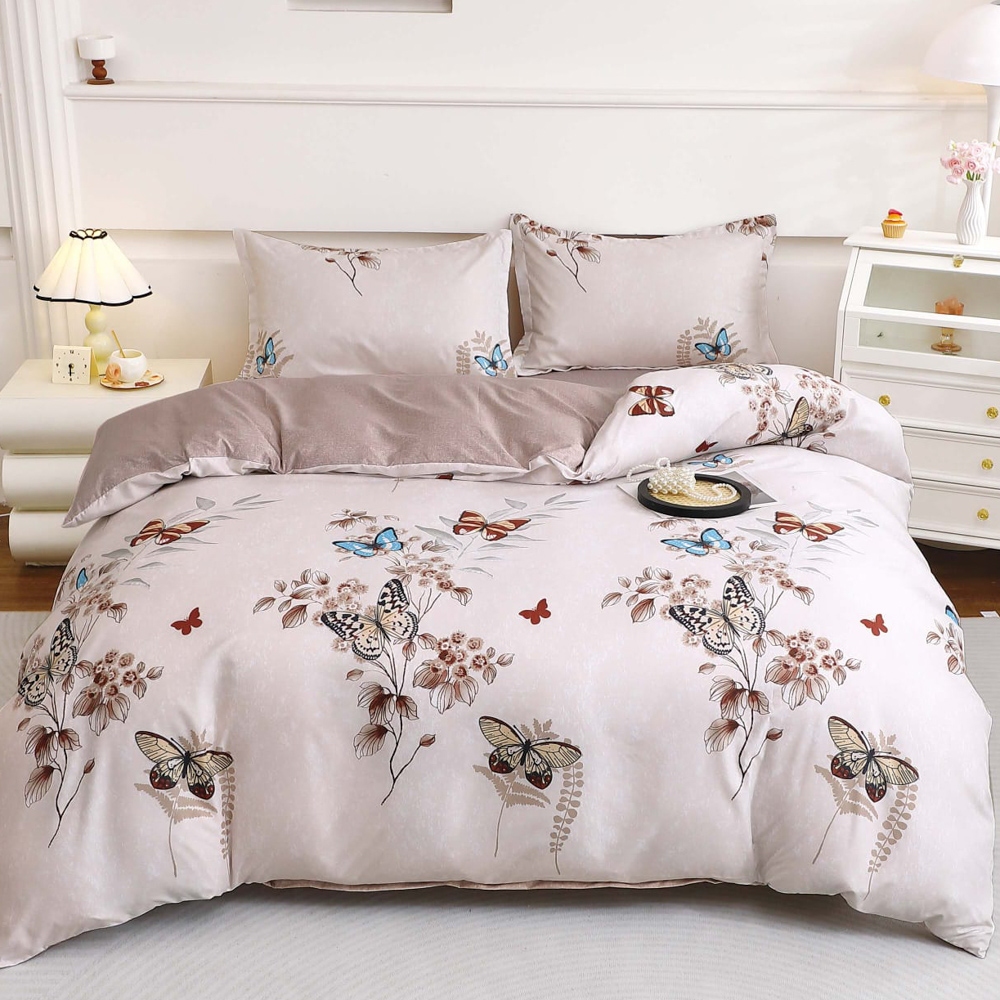 Lenjerie pat dublu cu Elastic, bumbac satinat, Bej, fluturi, Casa Creative Elegance Pucioasa, cod produs: BCC-SE-02