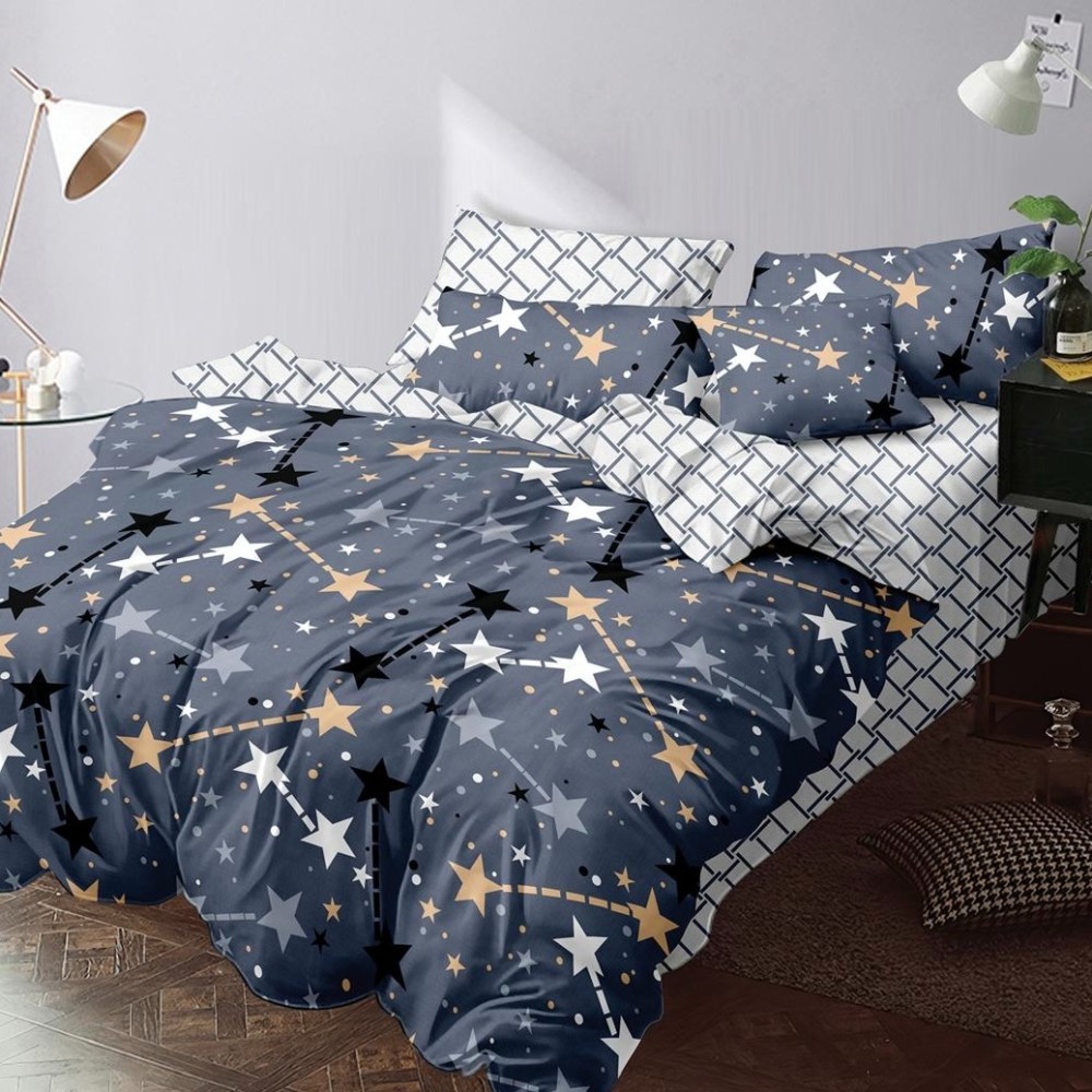 Lenjerie pat dublu cu Elastic (160x200cm si 180x200cm), bumbac satinat, Gri Albastrui, Stelute, cod produs: TRP-E-02