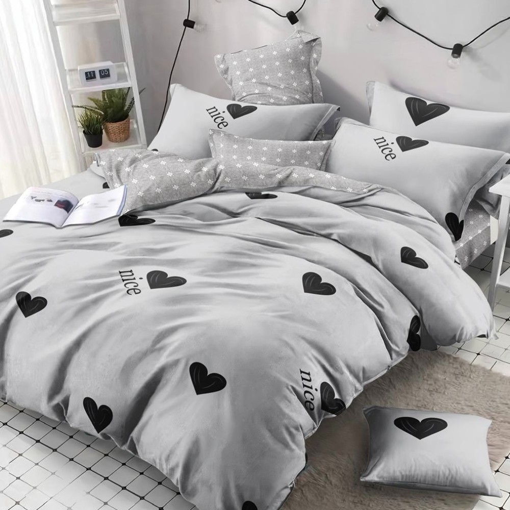 Lenjerie pat dublu cu Elastic (160x200cm si 180x200cm), bumbac satinat, Gri, Inimioare, cod produs: TRP-E-12