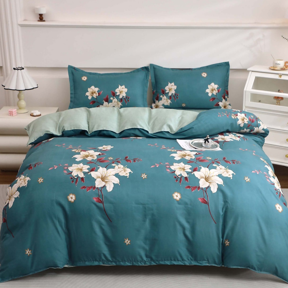 Lenjerie pat dublu cu Elastic, bumbac satinat, Turcuaz, flori, Casa Creative Elegance Pucioasa, cod produs: BCC-SE-25