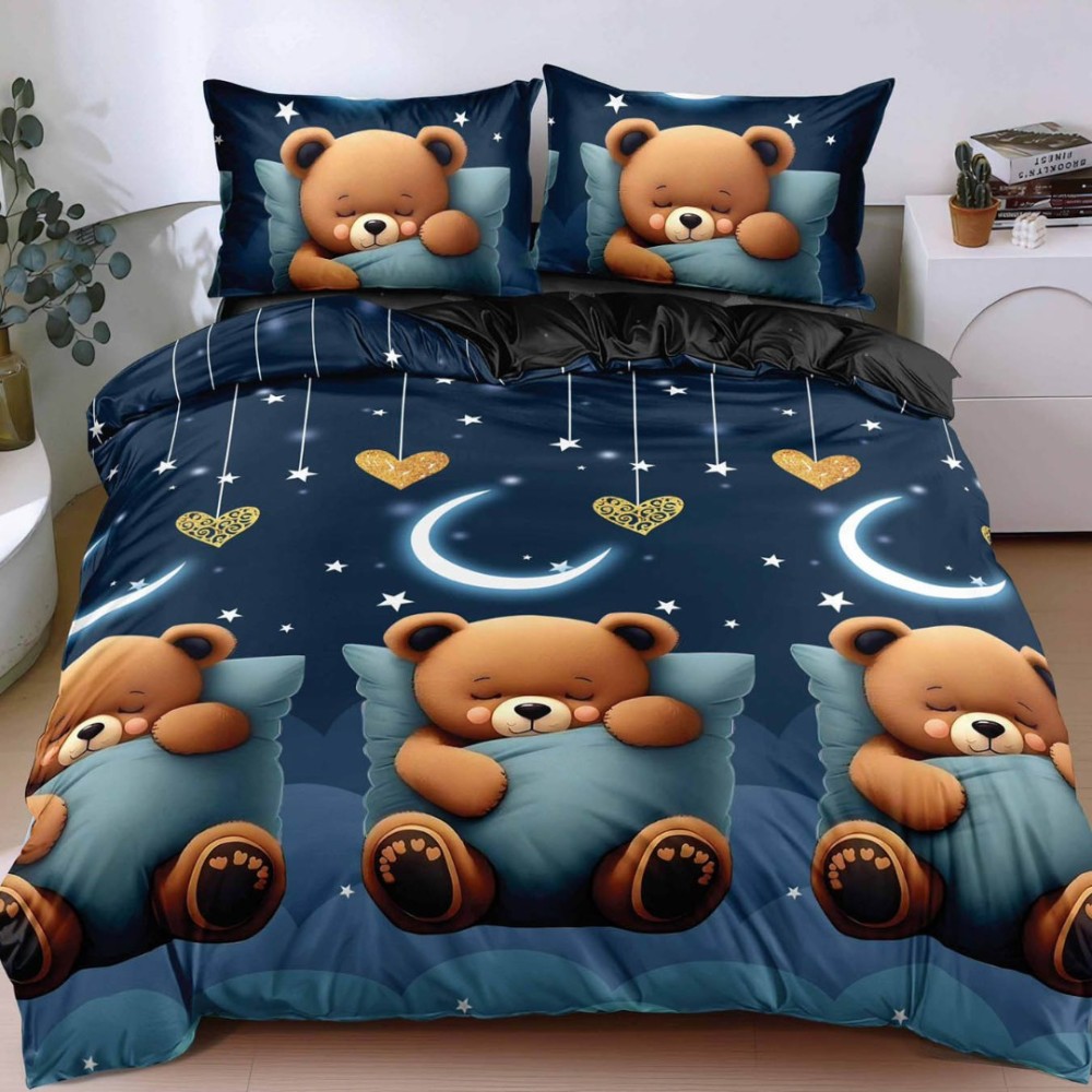 Lenjerie pat dublu cu Elastic, bumbac satinat, Albastru, ursuleti, Johny Home Pucioasa, cod produs: SPR-E-165