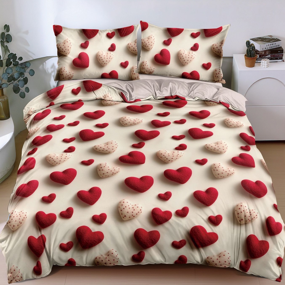 Lenjerie pat dublu cu Elastic, bumbac satinat, Bej, inimioare, Johny Home Pucioasa, cod produs: SPR-E-152