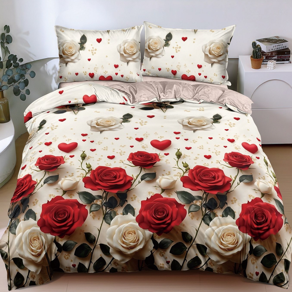 Lenjerie pat dublu cu Elastic, bumbac satinat, Bej, trandafiri, Johny Home Pucioasa, cod produs: SPR-E-160